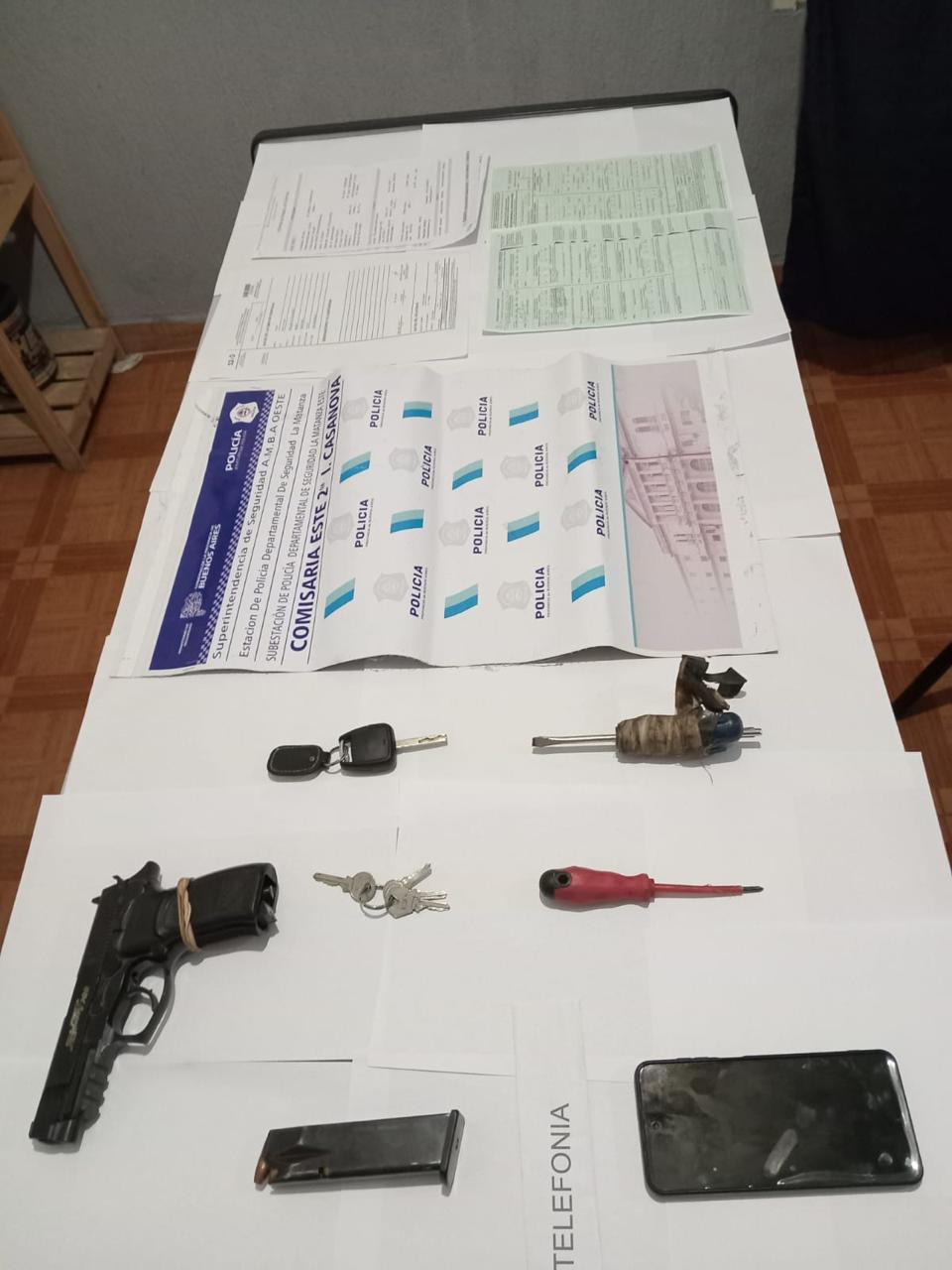 Fecha, Pnal en la intersección de las calles De Los Incas y RN 3 proceden a la aprehensión de: Joel Aguilera y Daniel Fernández quienes se desplazaban a bordo de: Vehículo Peugeot 208 Ptte NIS-191 presentando Chapa Patente Apócrifa siendo la correcta: Ptte AA-223-ED c/ Pedido de Secuestro Activo – Fecha: 11-2-25 – Delito: Robo Automotor – Solicita Cria 7C «CABA» quienes al momento de la interceptación intentan darse a la fuga logrando la interceptación a los pocos metros, incautando del interior del vehiculo: Una Replica de Arma de Fuego simil Pistola; 2 Destornilladores con punta «Yugas» y Documentación Apócrifa. Dr Tartaghian dispone la aprehensión de ambos y demás diligencias de rigor.