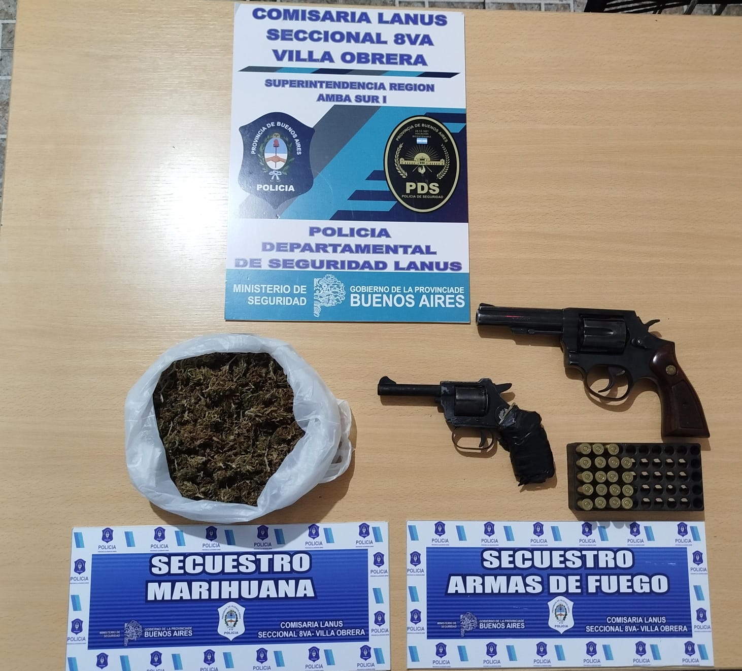 Lanús: Aprehendido por tenencia ilegal de arma de fuego y tenencia de estupefacientes