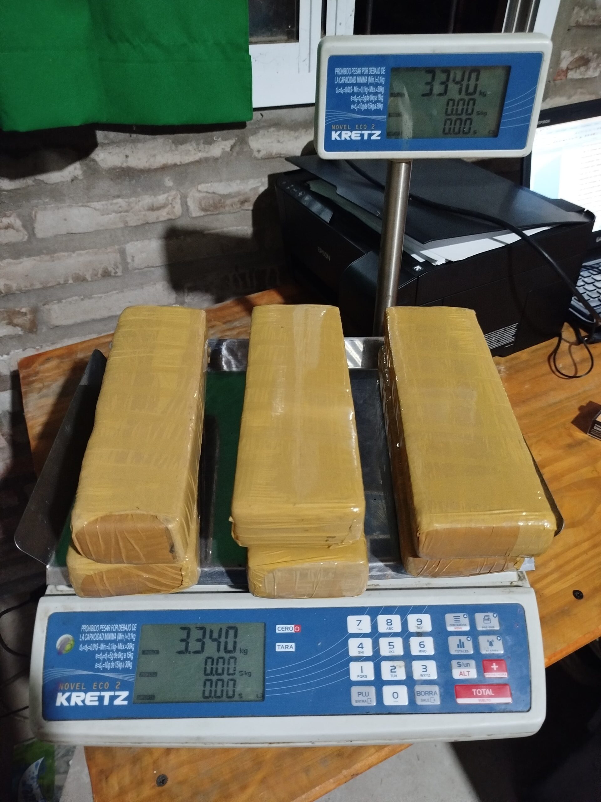 Secuestro de 22 paquetes encintados tipo ladrillos conteniendo 11,445 Kg. de marihuana (Cannabis Sativa), 721 envoltorios conteniendo 147,07 Grs. de Clorhidrato de Cocaína, 03 envoltorios conteniendo 11,43 Grs. de Pasta Base, 203 envoltorios conteniendo 32,3 Grs. de marihuana (Cannabis Sativa), 35 cubos de 27,30 Grs. (Cannabis Sativa), dinero en efectivo, elementos para corte y fraccionamiento, un rifle aire comprimido y telefonía celular