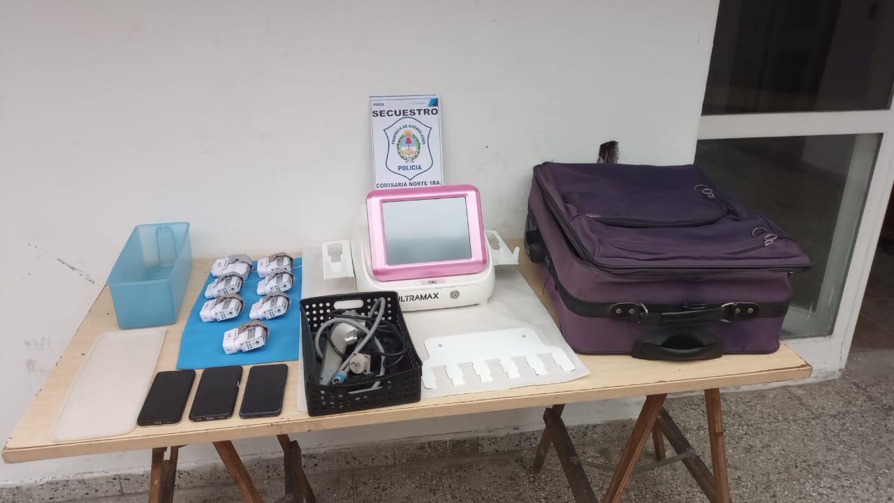 GTO de inteligencia criminal y en búsqueda de los elementos sustraídos en las redes sociales, establece que las máquinas estaban siendo vendidas por la plataforma de Mercado Libre, por lo que con anuencia del M.P.F se lleva a cabo una celada pactando la compra de mercadería. Lográndose las aprehensiones de Faria Antonella, de 21 años vendedora y a la interceptación del rodado Fiat Siena ptte. HXP-992 utilizado en el hecho junto a Castro Jessica de 40 años y Barrio Francisco de 47, siendo este último reconocido por la víctima. el día del hecho a quienes se le sec.: 01 máquina de tratamiento de arrugas láser y 03 teléfonos celulares y el vehículo utilizado el cual posee las numeraciones suprimidas.