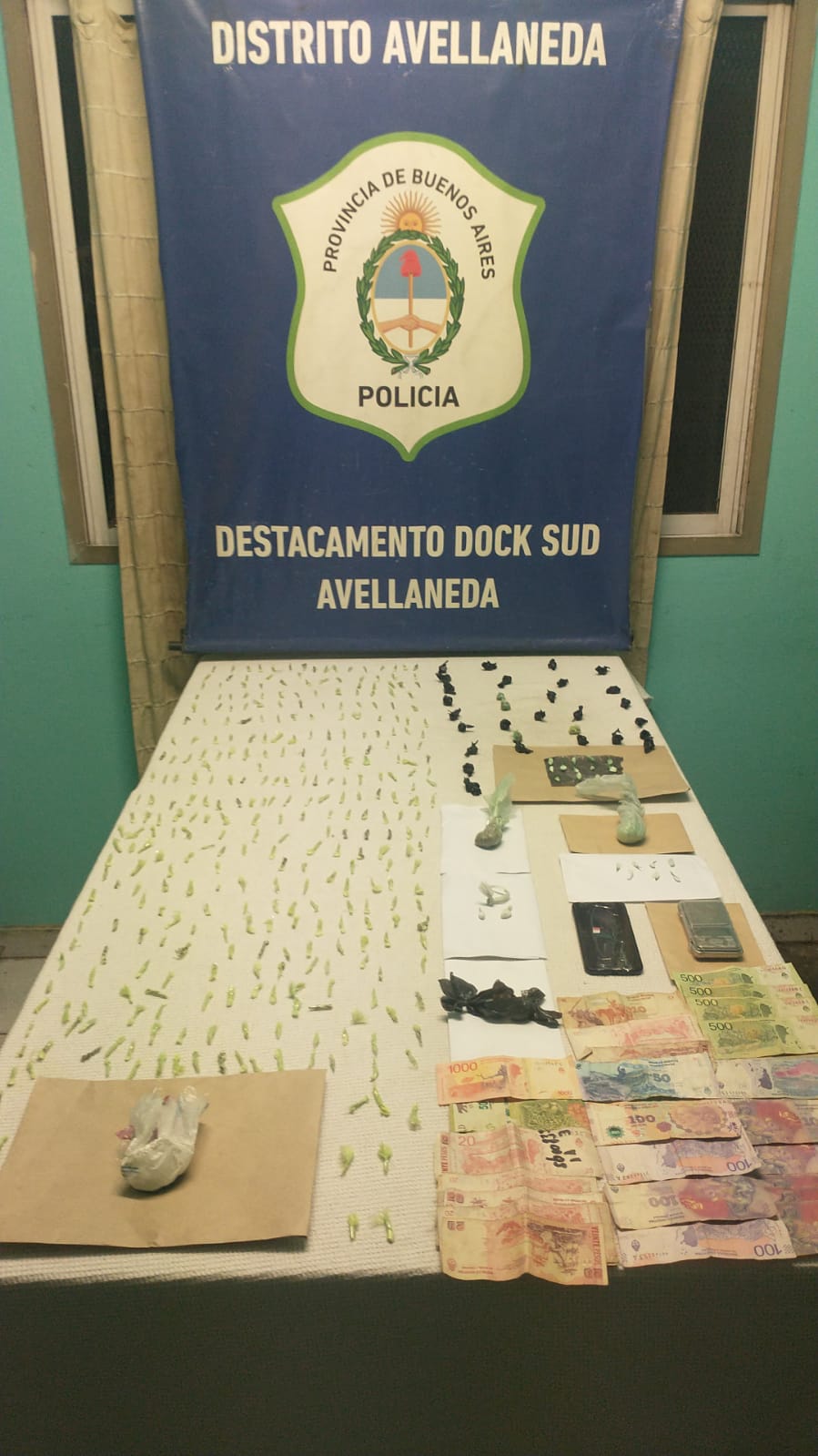 Cca. Dto. Operativo Dock Sud, Fecha personal de GTO de este elemento con apoyo de GTO de Cria. Avell., Personal de UPPL Avell. Y Personal de Cuerpo, procedieron a cumplimentar tres órdenes de allanamiento en relación a I.P.P. Nro. 20-00-008041-24 caratulada «COMERCIALIZACIÓN DE ESTUPEFACIENTES» int. del Juzgado de Garantías Nro. 01 a solicitud de la UFI Nro. 04 de Avell. Es así que Personal de GTO de este elemento inicia una investigación y posterior allanamiento de 03 objetivos, arrojando el siguiente resultado, OBJETIVO 01) Rivas Nro. 681 de este medio, se procedió a la identificación de GERRY MARTA GLADYS, arg., de 57 años, dda. en el lugar, OBJETIVO 02) Primer pasillo desde Pinzón y Rivas hacia Montaña tercer puerta metálica de lado izquierdo frente un árbol de grande dimensiones de este medio, se procedió a la aprehensión de GÓMEZ ARTURO OSCAR alias “GUSANO”, arg., de 40 años, ddo. En el lugar, por TENENCIA DE ESTUPEFACIENTES CON FINES DE COMERCIALIZACIÓN, en el lugar se incautó 365 bolsas de nylon conteniendo un peso total de 70,5 gramos de cocaína, 33 bolsas de nylon conteniendo un peso total de 59,78 gramos marihuana, una balanza de precisión, un teléfono celular, $5240 pesos en efectivo. Asimismo en el momento de la irrupción al domicilio de mención se aglomero en el lugar varios vecinos de la zona, quienes intentaron rescatar al aprehendido quienes comenzaron arrojar elementos contundentes contra personal policial impactado una piedra al TENIENTE 1RO URQUIJO GABRIEL ALBERTO, numerario de este elemento, produciéndole un corte en la altura de la cabeza siendo traslado al Hospital Fiorito, lugar donde recibió atención medica, encontrándose el mismo fuera de peligro, como así también recibió un impacto con una piedra a la altura de la cabeza el SUBTENIENTE GONZÁLEZ MARIO numerario del GTO de Cria. Avellaneda 6ta, quien fue traslado al Hospital Presidente Perón, lugar donde recibió atención medica, encontrándose el mismo fuera de peligro; OBJETIVO 03) casa paredón de chapa de zinc con puerta precaria de color rojo el cual se accede por interior de un pasillo que nace de la vías férreas paralela a la calle Pinzón de este medio, arroja resultado negativo. Se mantuvo comunicación con la Dra. Pasaro Carolina de la UFI Nro. 04 de Avell., puesto en conocimiento de los hechos, misma avaló lo actuado, disponiendo que se notifique al aprehendido del Art. 60, 89 y 92 del C.P.P., por el delito de mención epígrafe, quede alojado en sede policial y mañana sea remitidos a primera hora a sede judicial.