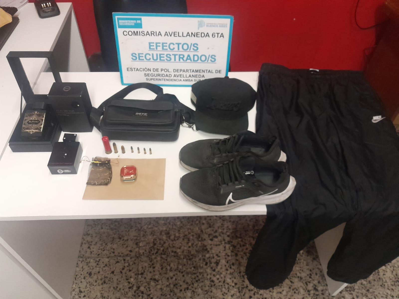 Cca. Cria Avellaneda Sexta, Gerli, a raíz de hecho acaecido,fecha 19/08/25, IPP20-00-016780-25/00, carátula ROBO AGRAVADO-ROBO AUTOMOTOR . Víctima refiere que se encontraba trabajando en su negocio rubro BARBERIA, ubicado en calle O’giguins al 1500, de este medio, momento en que ingresan dos sujetos masculinos, quienes mediante intimidación con arma de fuego, le sustraen pertenencias del comercio, como así también su vehículo, marca Citroen, modelo C4, color gris, dominio AD125CM, mismo habido momentos más tarde. Atento a ello personal GTO de este elemento realiza tareas de campo, mediante visualización de cámaras privadas y municipales, logrando establecer la identidad de uno de los delincuentes, obteniendo con todos los elementos probatorios 02 órdenes de allanamiento y una orden de detención por así haberlo ordenado el Juzgado de garantías en turno , a solicitud de la UFI 01, ambos de Avellaneda. Es así que en fecha actual con apoyo de la totalidad de los GTO de las comisarías de Avellaneda y personal UPPL, se da cumplimiento a la manda judicial arrojando el siguiente resultado. OBJETIVO 01: calle Madariaga 2150, se hace efectiva la detención del sindicado Kevin Dario Díaz, secuestrando en la habitación del sindicado 01 pantalón Nike, color negro, 01 par de zapatillas Nike, colo negro, un Gorra tipo Vicera color negro, (prendas utilizadas en el hecho), 01 morral marca VETE AL DIABLO, color negro, 01 perfume árabe OUD FOR GLORY LATTAFA, 01 perfume árabe CLUB DENUIT,(pertenencias de la víctima, recuperadas), 01 cartucho de escopeta cal..16, 04 municiones cal. 22, 01 munición cal. 9 mm y una munición cal..357, OBJETIVO 02: calle Venezuela 2501, identificación de Enzo Marcos Tomás Anriquez, arg. de 22 años, arrojando el registro de la vivienda resultado negativo. OBJETIVO 03: resultado negativo.