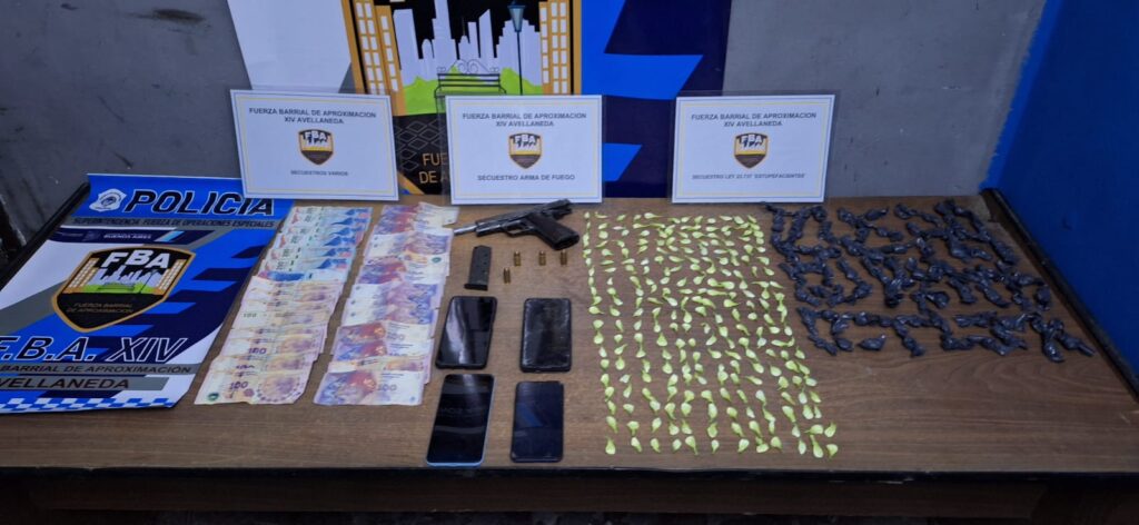 Fecha y hora, el personal de este elemento en recorrida visualizan a 2 masculinos con una mochila verde, los cuales al notar la presencia estos se dan a la fuga, realizando disparos de arma de fuego, por tal motivo, el personal repele la agresión, efectuando disparos con armas provistas del Oficial SOMMERFELD MATÍAS y Oficial GRIPPO LEONEL. Posteriormente, tras finalizar agresión de arma de fuego por parte de los masculinos, estos se resisten a la aprehensión forcejeando con el personal provocando la caída de la Oficial Manzioni Daiana. Una vez finalizado la aprehensión, se realiza el secuestro de un arma de fuego, estupefacientes y dinero para posterior traslado a la comisaría 3ra de Dock Sud, fines de realizar actuaciones de rigor