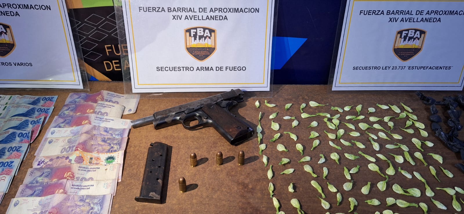 Arma de Fuego, marca COLT 11.25 n° 49131 con 4 municiones, 250 dosis de CocaÍna, 70 dosis de marihuana, 4360 dinero en efectivo: (23) billetes de 100; (7) billetes de 200; (8) billetes de 50; (8) billetes de 20, 4 celulares 1. Samsung Azul oscuro con funda negra; 2. Codac Celeste; 3. Motorola negro Astillado; 4. Samsung mini Azul oscuro