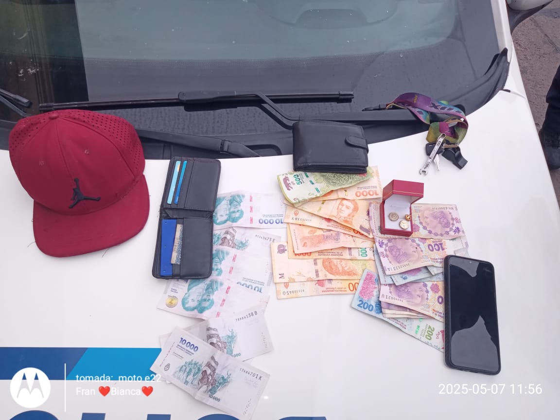 DOS(02) APREHENDIDOS MASC. MAYORES POR ROBO «MODALIDAD ENTRADERA», SECUESTRO DE MOTOCICLETA UTILIZADA EN EL HECHO, SECUESTRO DE DINERO EN EFECTIVO, ALHAJAS Y BILLETERAS SUSTRAÍDAS COMO TAMBIEN PRENDAS UTILIZADA EN LA COMISIÓN DEL HECHO…-