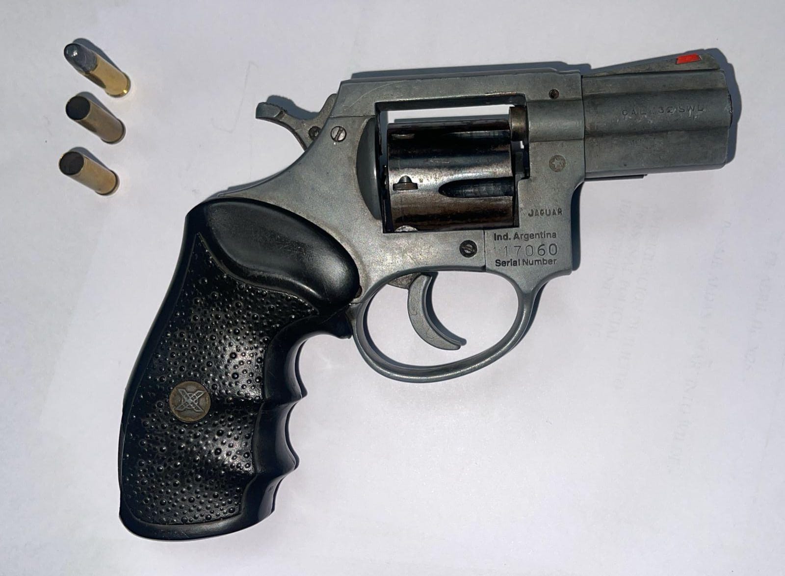 SECUESTRO: UN ARMA DE FUEGO, TIPO REVÓLVER, CAL. .32, MARCA JAGUAR, NRO. DE SERIE 117060, DOS VAINAS SERVIDAS Y UNA MUNICIÓN SIN PERCUTAR.