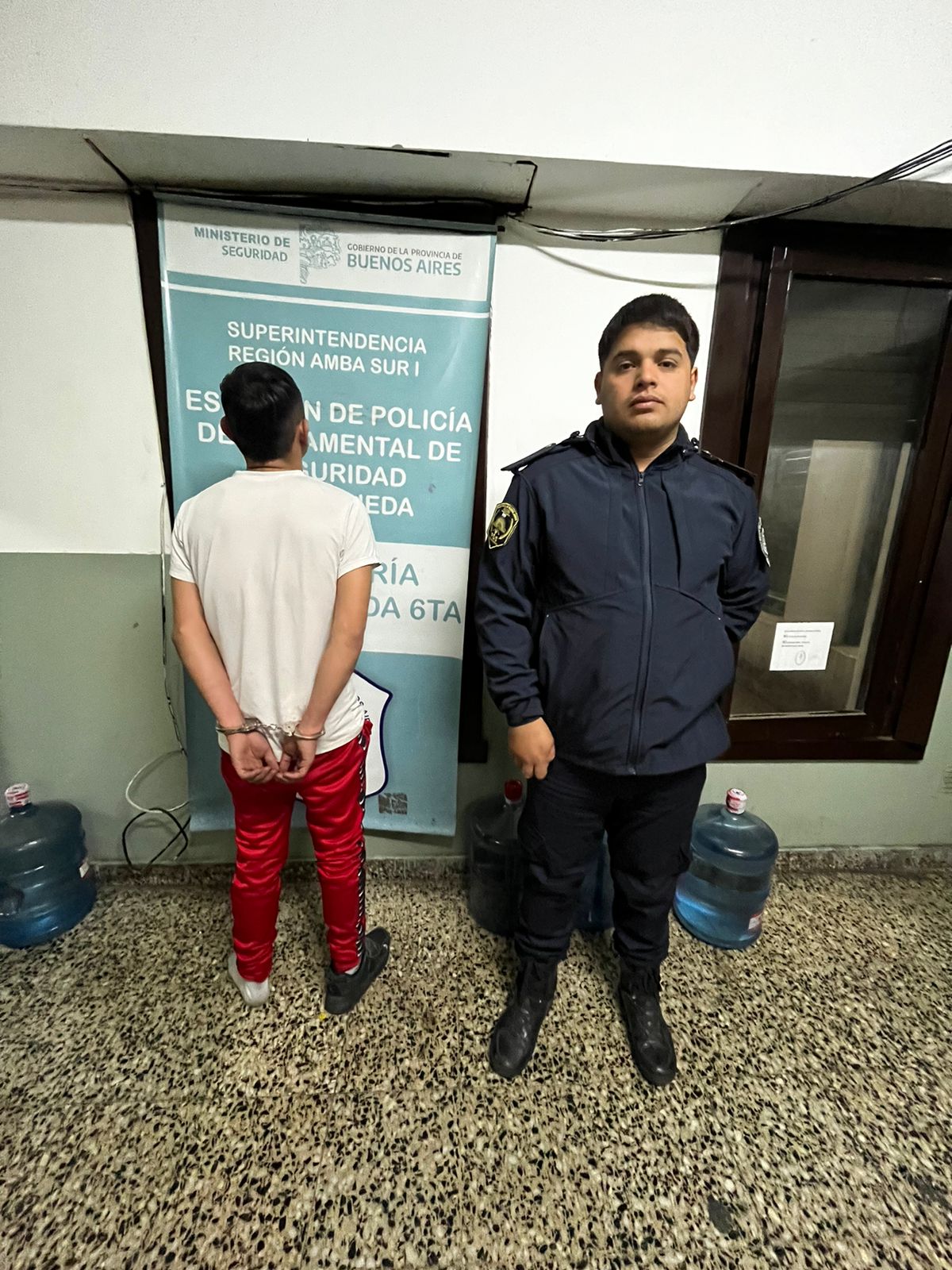 Fecha y hora actual, personal de este Comando Patrullas, cuadrante 15 luego de una breve persecución a pie en las calles Caxaraville y Pje. 4, proceden a la aprehensión de Dylan Alexis Guzmán de 18 años en virtud momentos antes sustrajo un celular al Sr. Claudio C,, mediante la intimidación de arma blanca, quien se encontraba en vehículo Ford fiesta gris ptte HCU-817, realizando viajes con la aplicación virtual “Didi”. Mismo al notar la presencia policial emprende la huida por los pasillos ingresando a su domicilio y tras seguimiento irrumpen la morada, una vez en el interior de la finca descarta un cuchillo tipo de cocina, el cual se logro secuestrar. Se utiliza la fuerza mónima e indispensable para luego reducirlo según lo normado en el Art. 222 del CPP. Cabe destacar que no se logro incautar el elemento sustraído. Trasladan causante, secuestro y denunciante al asiento de la Cría Avellaneda 6ta. Toma intervención UFI Nro. 01 en turno,
