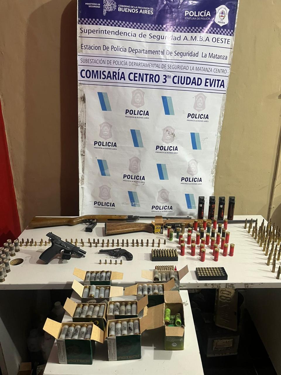 GTO Tras cumplimiento de tareas realizadas, logro la identificación del agresor, aportando elementos probatorios para la obtención de medida de Orden de Allanamiento, la cual se llevo adelante en la fecha, arrojando como resultado la Detención de: Enrique Héctor Bernard, de 68 años autor del hecho, y el Secuestro de: Una Pistola Bersa Thunder cal 9mm con 16 municiones en su cargador; Un Revólver cal 32mm marca WCTGF con 6 municiones y Dos Carabina cal 22mm marca Halcón todas ellas c/numeración suprimida; Cuatro envases llenos de gases lacrimógenos/pimienta, marca CTS; 70 municiones cal 7,62mm; 430 cartuchos intactos de escopeta cal 12,70mm; 50 cartuchos intactos cal 32mm; 106 cartuchos intactos cal 9mm y 73 cartuchos intactos cal 22 mm. Dra Piatelli dispone su detención y traslado a sede judicial para el día de mañana a primera hora.