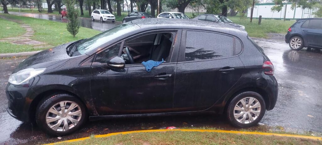 Personal policial arriba a la intersección de las calles Las Camelias y El Ceibo donde observa la presencia de dos masculinos, quienes alertados de la presencia policial emprenden de la huida, procediendo a la aprehensión de uno de ellos, a quien se identifica como: Alejandro Andrés Rodríguez de 25 años, incautándose en poder de este: Arma de Fuego del Tipo Pistola cal 9mm marca Beretta serie Storm PX4 serie XP-258025 con cargador con 19 municiones intactas, Haciéndose presente en la seccional víctima Alfredo C, efectivo de la Policía de la Ciudad, quien manifiesta que momentos antes se hizo presente en la calle Las Flores y Las Calas a bordo de su Vehículo Peugeot 208 Ptte AD-246-LD, fines de retirar un perfume que había pactado por Marketplace, cuando fue sorprendido por cuatro masculinos armados quienes lo despojan de arma reglamentaria, billetera, y rodado previo darle un “culatazo” en la cabeza, donde un vecino lo traslada a centro asistencial lugar donde le realizan dos puntos de sutura. Que luego pone en conocimiento a su mujer de lo sucedido y en arteria Maciel y Cristiania de San Alberto, logran hallar su rodado el cual tenia vidrio roto, reconociendo en el momento del ingreso al aprehendido como uno de los autores del hecho y el arma incautada como de su propiedad.