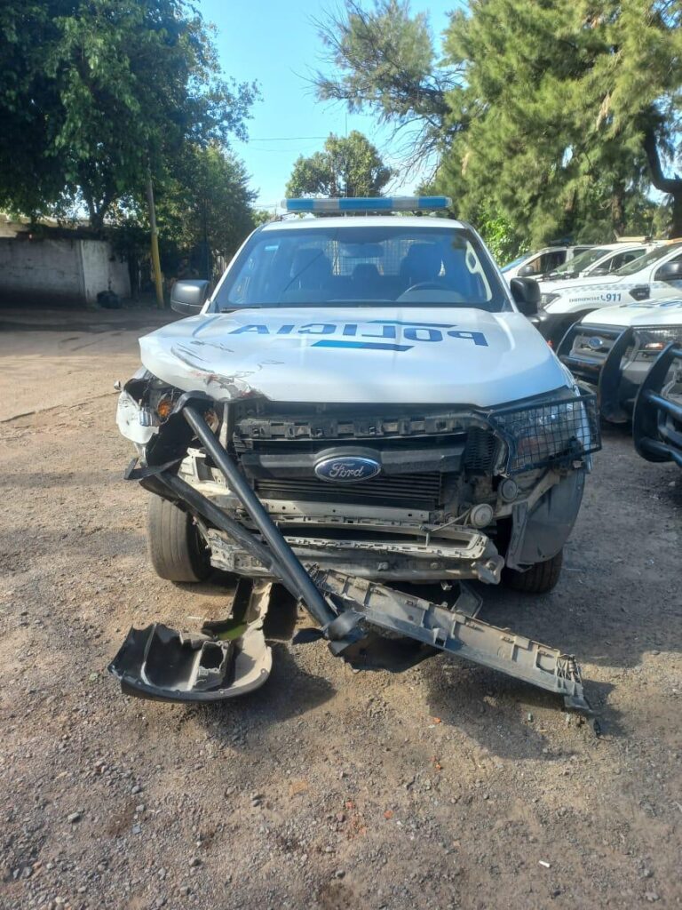 Fecha, Personal policial en recorrida por la calle Av Central y Calle 1100 observan el desplazamiento de Camioneta Jeep Renegade Ptte AD-317-UI la cual fue sustraída momentos antes en el ámbito de San Alberto modalidad «Robo Automotor», alertado de la presencia policial, emprenden la huida y al llegar a la calle Av Cristiania y Obligado colisionan con Movil 23.331 del CP Centro el cual era conducido por Sargento (EG)- MARTINEZ Ruiz y Teniente (EG) – COSILOVA Elio, los cuales son trasladados a Clínica Solis logrando la aprehensión de: Joel Darío Martinez de 21 años y Sergio Héctor Bustos de 18 años. Dra Palin dispone la aprehensión de ambos y demás diligencias de rigor. Pnal reviste Lesiones Leves.