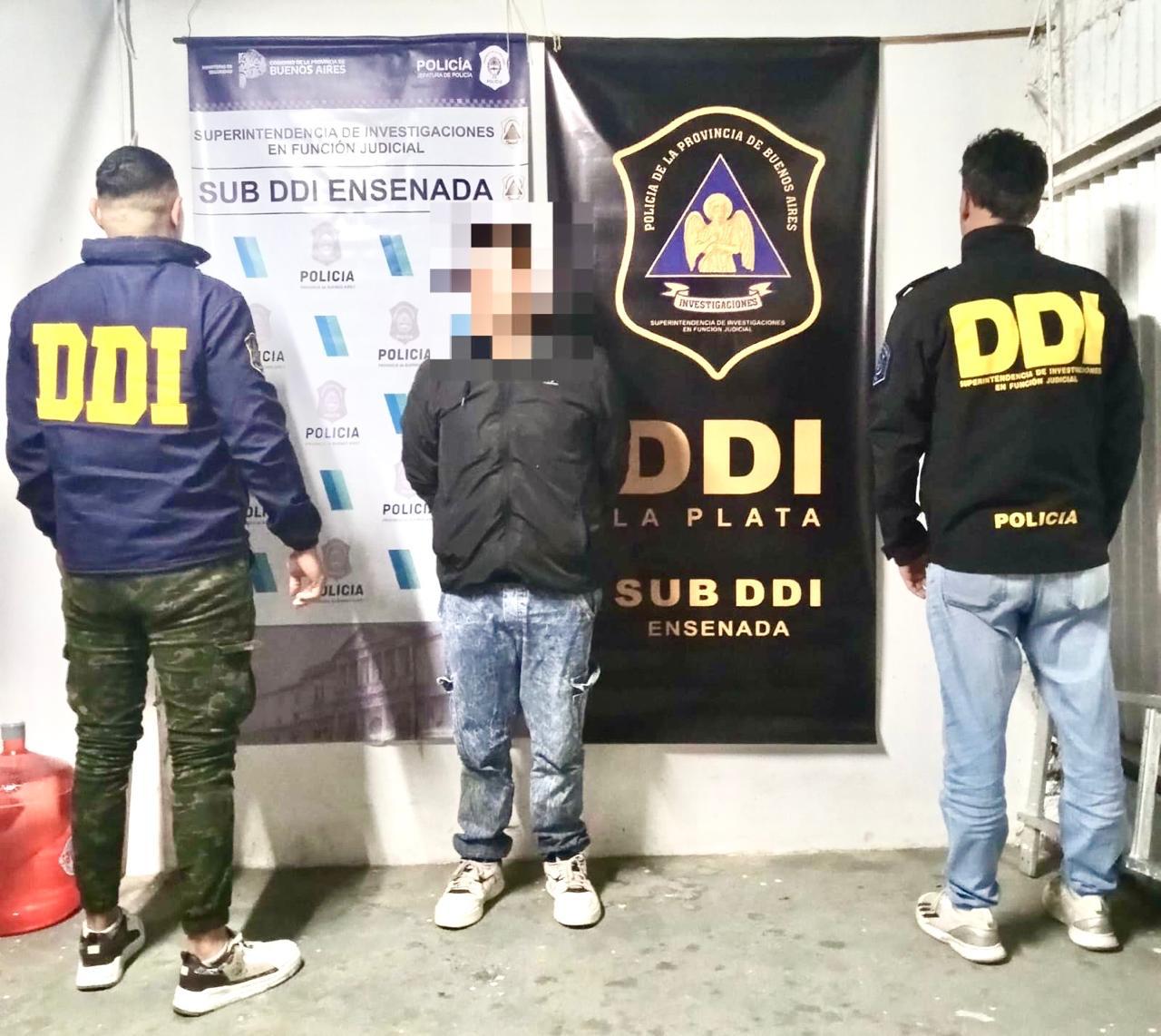 Fecha, pnal. SDDI Ensenada, tras arduas tareas, establece presencia del sindicado en zona de Punta Lara, por lo que iniciaron recorridas por zona costera, avistándolo en A. Brown e/ 132 y 133, sobre el murallón de “La Pérgola”, quien al notar presencia policial, intentó huir hacia el río, siendo reducido, efectivizando su detención.
