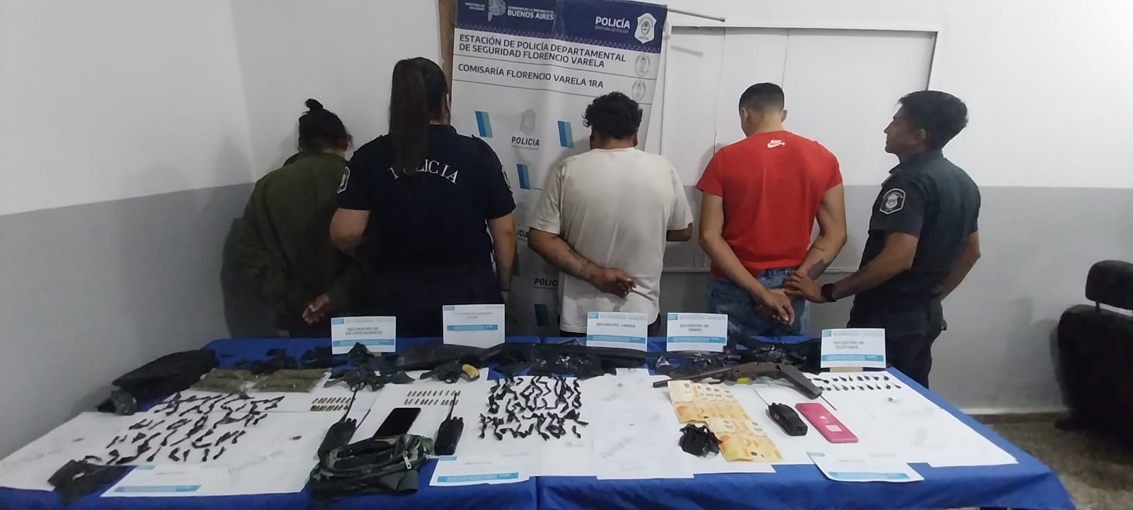 Fecha y hora actual, GTO de comisaría Florencio Varela 1ra llevo a cabo 04 órdenes de allanamiento en IPP 24279, con intervención de la UFI 01 a/c Dr. Provisionato, Ayudantía Fiscal Temática Estupefacientes Dr. Leonardo Valli, ambos de Fcio Varela y con la colaboración de DRONES del Ministerio de Seguridad de la provincia de Bs. As. Donde de resultancias arrojo el siguiente resultado, OBJ1: calle Ginebra y Suecia, se aprehendió a la sindicada ROCÍO LÓPEZ por Inf. Art. 5 ley 23.737 y se incautó en su vivienda un Handy marca Baofeng, cincuenta (50) envoltorios de nylon pequeños que contienen Clorhidrato de Cocaína (PACO) con un pesaje de 6.90grs, gran cantidad de recortes de nylon, un revólver calibre 22 largo, sin marca y con numeración 096284 (sin impedimento al momento) cuatro envoltorios de nylon que contiene Picadura de Marihuana que arroja un pesaje de 60grs: OBJ 2: calle La Haya y Martin Fierro, se aprehendió al sindicado CABALLERO NAHUEL por Inf. Art. 5 ley 23.737 y se incautó un revólver calibre 22 largo, numeración suprimida, con 21 cartuchos intactos, cincuenta y ocho (58) envoltorios de nylon de color negro que contiene Clorhidrato de Cocaína (PACO) arrojando un pesaje de 8.36grs, un Handy de color negro, gran cantidad de recortes, un envoltorio de nylon blanco (PACO) que pesa 0,39 grs, $ 9,000 pesos y celular marca Samsung de color negro; OBJ3 arrojo resultado negativo y el ultimo el OBJ4; calle 572 bis y El Zorzal, se aprehendió al sindicado OLMEDO CRISTIAN por Inf. Art. 5 ley 23.737 y se incauto 21 envoltorios de nylon negro que contiene Clorhidrato de Cocaína (PACO) arrojando un pesaje 6.75grs, gran cantidad de recortes de nylon, un pistolón sin marca y sin numeración, un teléfono celular marca Motorola y un Handy marca Boafeng.