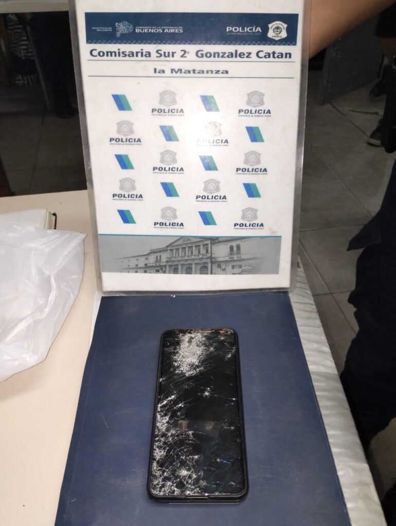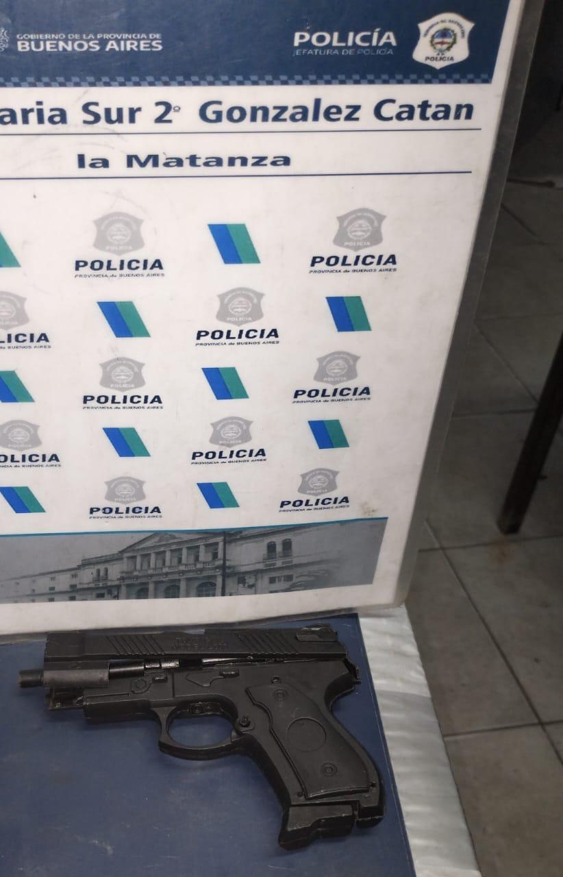 Personal arriban a la intersección de las calles Montgofield e Icalma donde proceden a la demora de: “Imp: García Matías Ezequiel de 24 años”, quién momentos en compañía de otro masculino en fuga, mediante intimidación de arma sustraen a Daniela Ruth D. de 37años un teléfono celular y un par de zapatillas, dicha situación fue advertida por el: Personal Policial: Teniente Primero (EG) – ORELLANA, José – numerario del Comando de Patrullas Norte quien se hallaba de POLAD por el lugar junto a una comisión de la empresa EDENOR, por lo que procede a reducir a uno de los delincuentes recuperando los elementos sustraídos a la victima, se logra incautar en poder del imputado: Un arma de utilería similar Pistola, se deja constancia que al momento de la demora el mismo es agredido por un grupo de vecinos y transeúntes siendo asistido. Dr Garatte dispuso su aprehensión y traslado a sede judicial