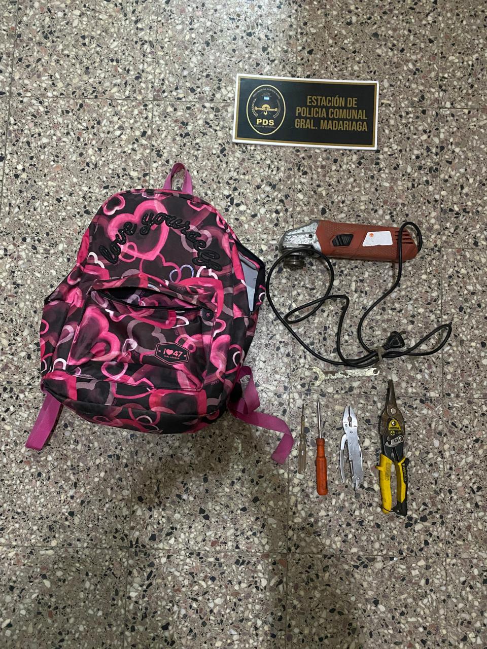 (01) OBJETIVO: calle 49 bis e/ 8 y 10 de este medio*, en el lugar se identifica a MARTÍNEZ REINE JAVIER JOSÉ (37), ARG, inst, soltero, desempleado, FN 20/06/1986, domiciliado calle 49 BIS E/8 y 10 de este medio, quien puesto en conocimiento de dicha orden, se procede a realizar la misma, resultado de dicha diligencia POSITIVO, procediendo a secuestrar 01 Mochila Color negra con vivos rosa, 02 pinzas de mano de color gris y de color amarillo y negro, 02 destornilladores con mango de plástico de color naranja y marrón claro, 01 moladora color naranja y gris sin marca visible, 01 replica de arma semi automática calibre 9mm con balines color amarillos, 01 par de zapatillas color blanca con detalles en negro marca “ADIDAS”, 01 campera color negra tipo “rompe viento” marca “ADIDAS”, los cuales eran solicitados en la presente orden. Mantenida comunicación con MPF Sr. Agente fiscal en turno Dr. Calderón Juan Pablo, mismo avaló lo actuado y dispuso notificación formación de causa art 60 C.P.P. para con MARTIÍNEZ REINE JAVIER JOSÉ por el delito de HURTO y se envíen dichas diligencias vía mail a sede fiscal nro. 08 Gral. Madariaga. Respecto de los elementos secuestrados se procede a exhibición, reconocimiento y entrega a denunciante.