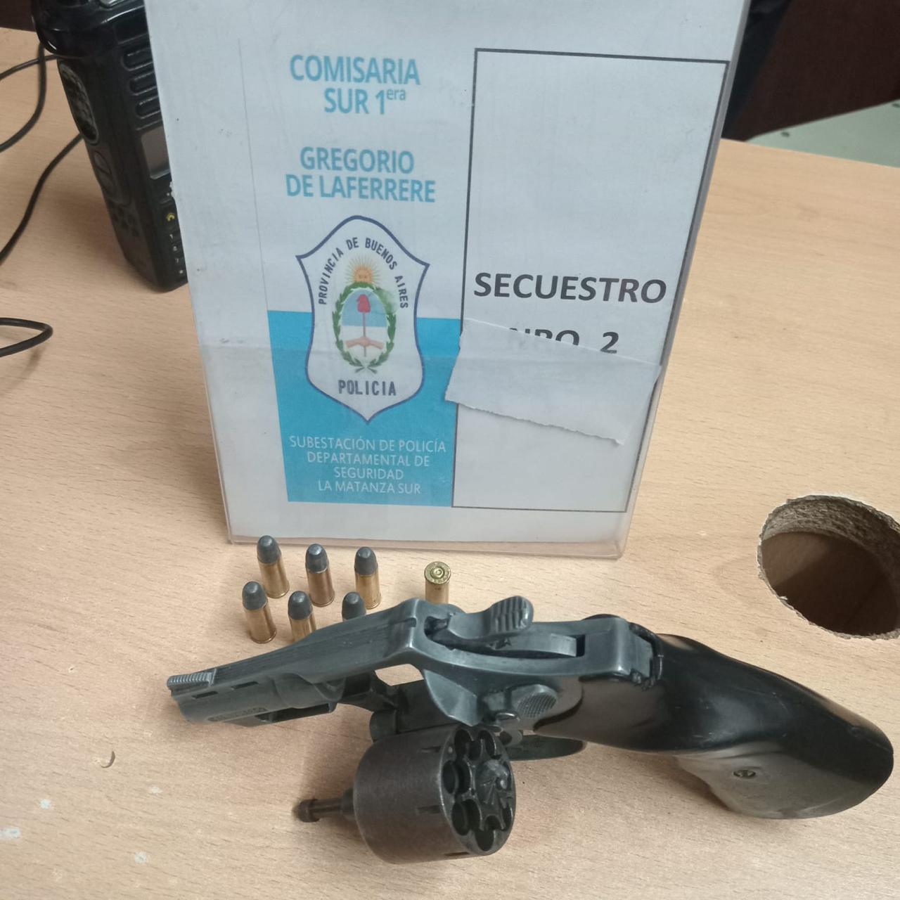 Fecha Pnal. se constituyó en García Merou y Tarija donde se encontraba en el techo de una vivienda el imputado Carlos Elizardon Del Buono DE 33 años refiriendo que se quitaría la vida; luego de unos minutos depone su actitud y baja del techo. Se incautó revólver calibre. 32L sin numeración y 7 municiones intactas. Dr. Medone dispone actuaciones espigrafe, y asistencia médica.