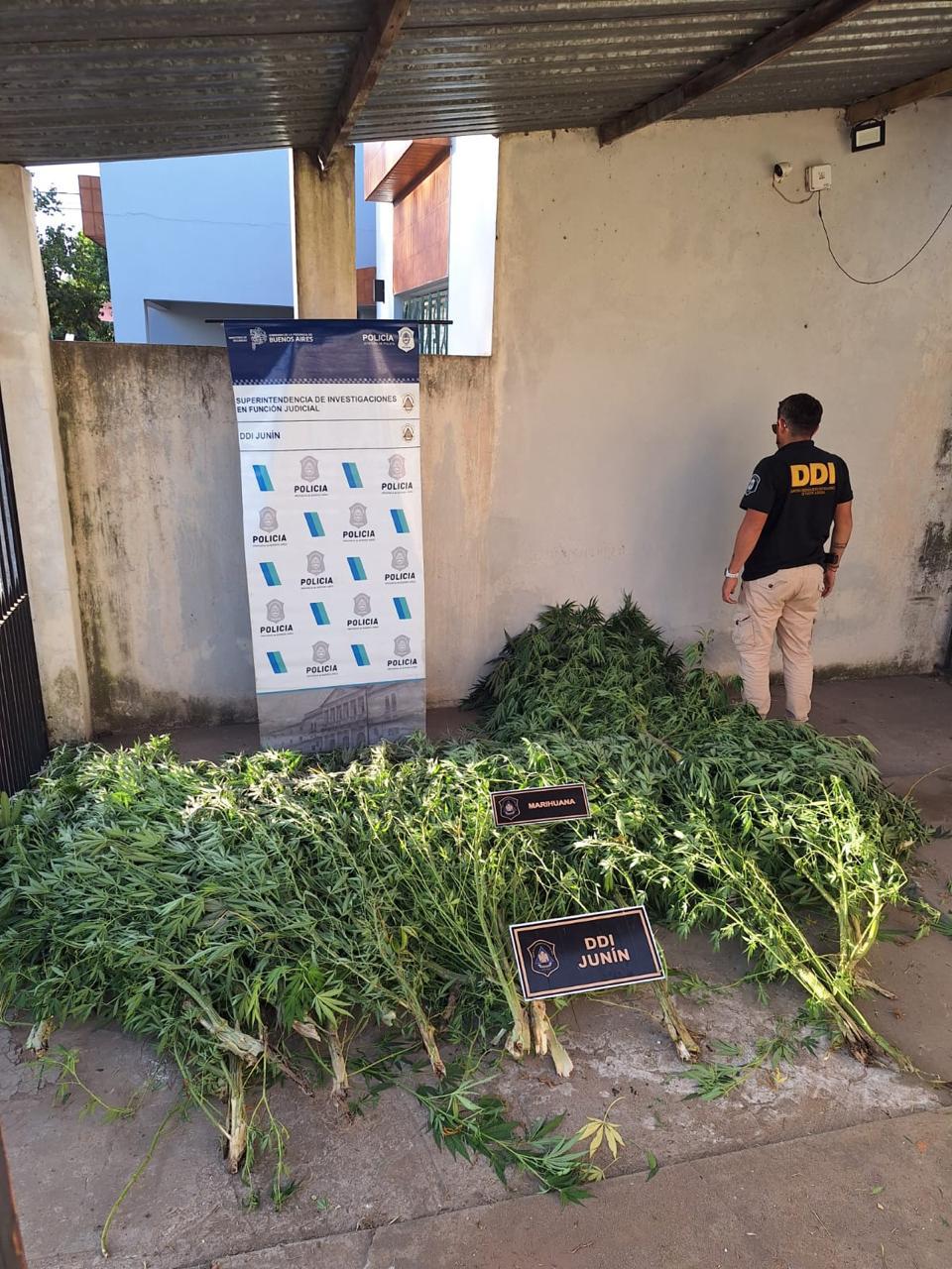 Mantenida comunicación con el Dr. Esteban Lopardo titular Ayudantía Fiscal de Estupefacientes, autorizo allanamiento en la urgencia en inmueble de marras, sito calle Coronel Suárez Nº 530, lugar donde fue aprehendido morador Hernán Arce de 26 años y en patio trasero de vivienda se procedió al secuestro de (12) plantas de 1,70 mts. altura aprox. de marihuana, de las que realizado pesaje hojas y tallo arroja 14,5 kg.