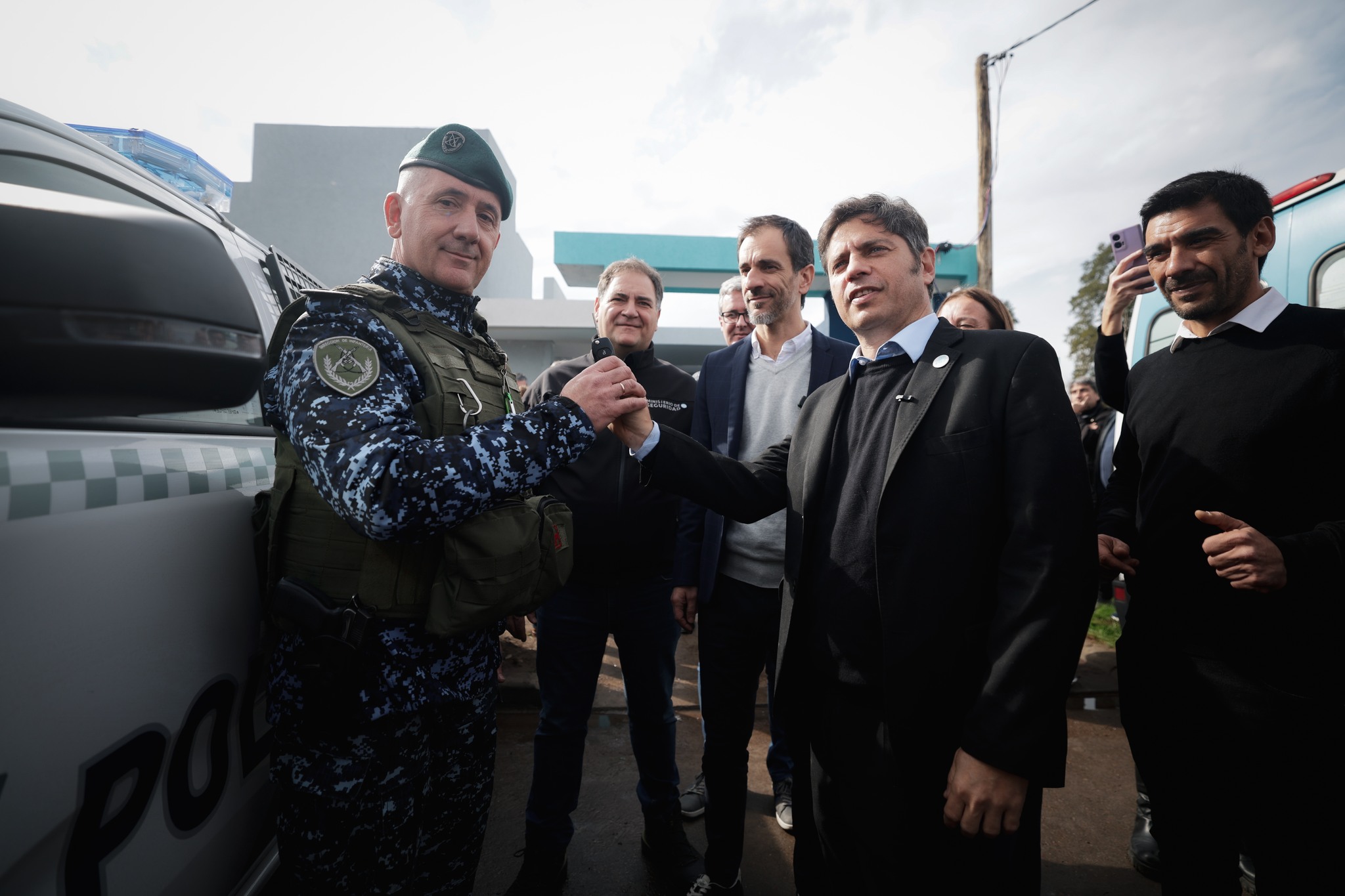 En Junín, junto al gobernador Axel Kicillof, la jefa de Asesores Cristina Álvarez Rodríguez, el ministro de Salud Nicolás Kreplak y el intendente Pablo Petrecca, entregamos nuevos móviles policiales para reforzar la presencia de la Policía en el territorio.