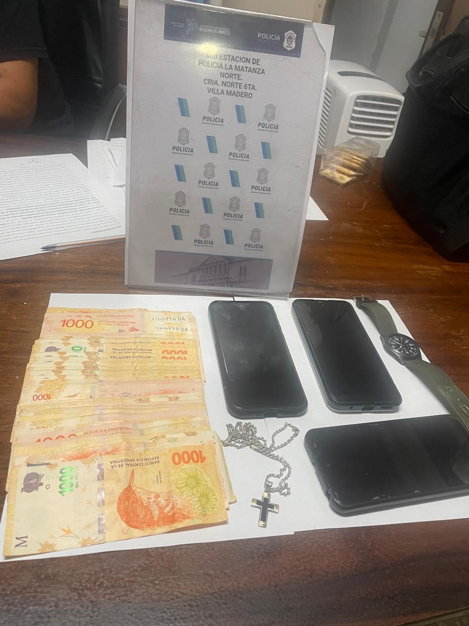 GTO comisaría Villa Madero, tras tareas realizadas logro la identificación del autor: Pereyra Eduardo de 24 años, obteniéndose medida de Orden de Allanamiento, para 1 domicilio la cual se llevo adelante en la fecha, arrojando como resultado la detención del autor material Pereyra Eduardo como así el Secuestro de: 3 Teléfonos Celulares, Dinero en efectivo 10.000 pesos y Un Reloj, siendo reconocido por la víctima como de su propiedad.