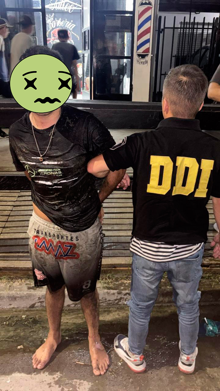 Una vez dentro del comercio y al disponerse para ser atendido, advierte la presencia policial y sale corriendo, siendo rápidamente detenido en la vereda por los efectivos de esta DDI.