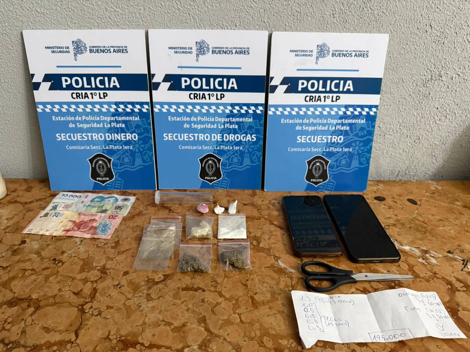 Tras ser interceptados e identificados, se procedió a una requisa en la que se secuestraron 3 envoltorios con marihuana (2,59 gramos), 5 envoltorios con cocaína (6,37 gramos), dos celulares y $10.025 en efectivo.