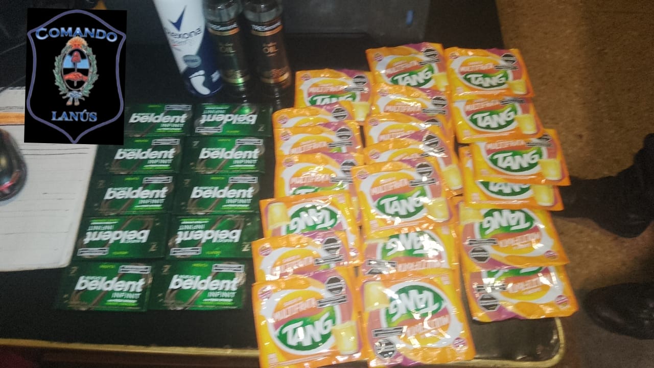 Fecha, personal del Comando de Patrullas Lanús (14) comisionados por 911 calles Rivadavia y Warnes Supermercado Coto, proceden a la Aprehensión de Rosales Mirta (66) quien intenta sustraer mercadería oculta entre sus ropas secuestrando 8 envoltorios de chicles “Beldent”, 20 jugos “Tang”, 2 Shampoo y 1 desodorante. Interv. Cría Lanús 7°.