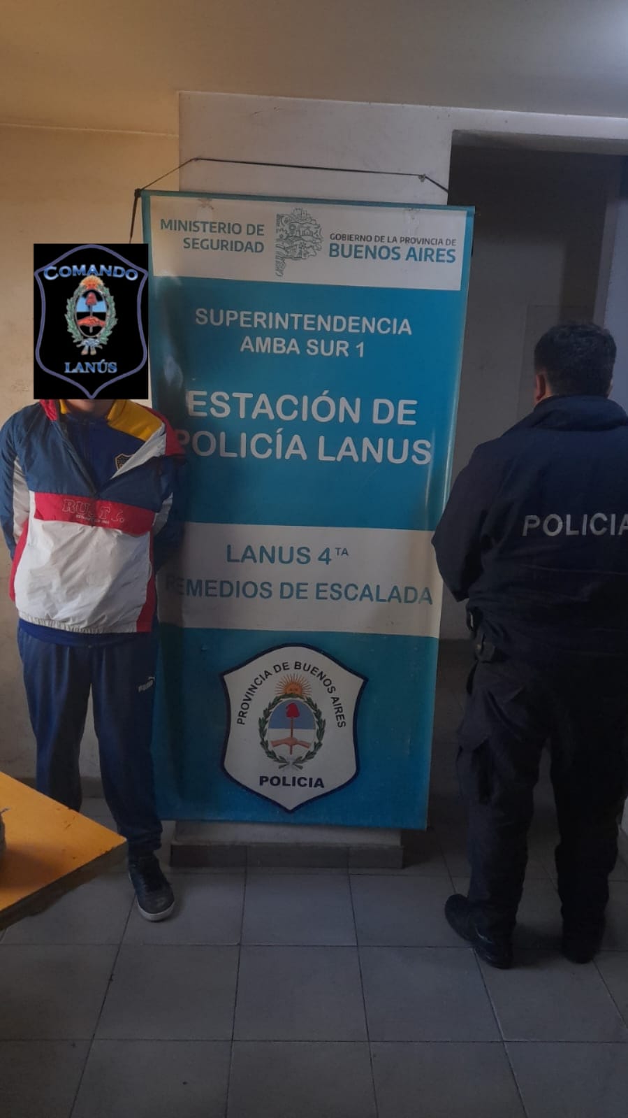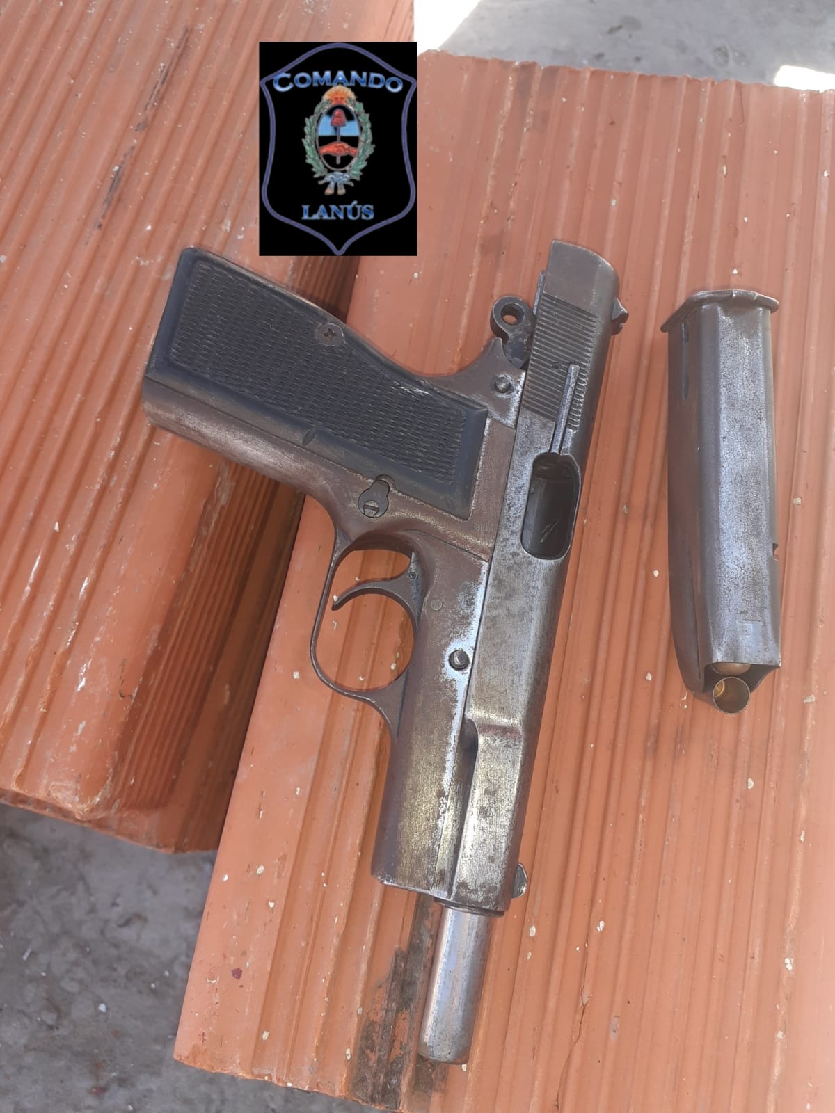 Fecha personal Comando de Patrullas Lanús (08) en recorrida por calles Rangugni y Rosales, alertados vía radial por caminante de FBA por detonaciones de arma de fuego. Arribados avistan a sujeto inician persecución, logrando a pie, logrando la aprehensión a pocos metros metros de Ruiz Lucas Nazareno (19) quien momentos antes se despoja en la huida de arma de fuego, la cual se secuestra del interior de un domicilio, tratándose de pistola Browning 9 mm con 4 municiones intactas 1 vaina servida numeración suprimida. Así mismo el mentado no estaría ajeno a hecho delictivo del día de ayer a conductor de Uber en arterias Lituania y 3 de Febrero Víctima. LEANDRO C. y sustrajeron rodado marca Chevrolet Aveo Pte KFY-655. Personal policial Ileso. Interv. Cría Lanús 4°.