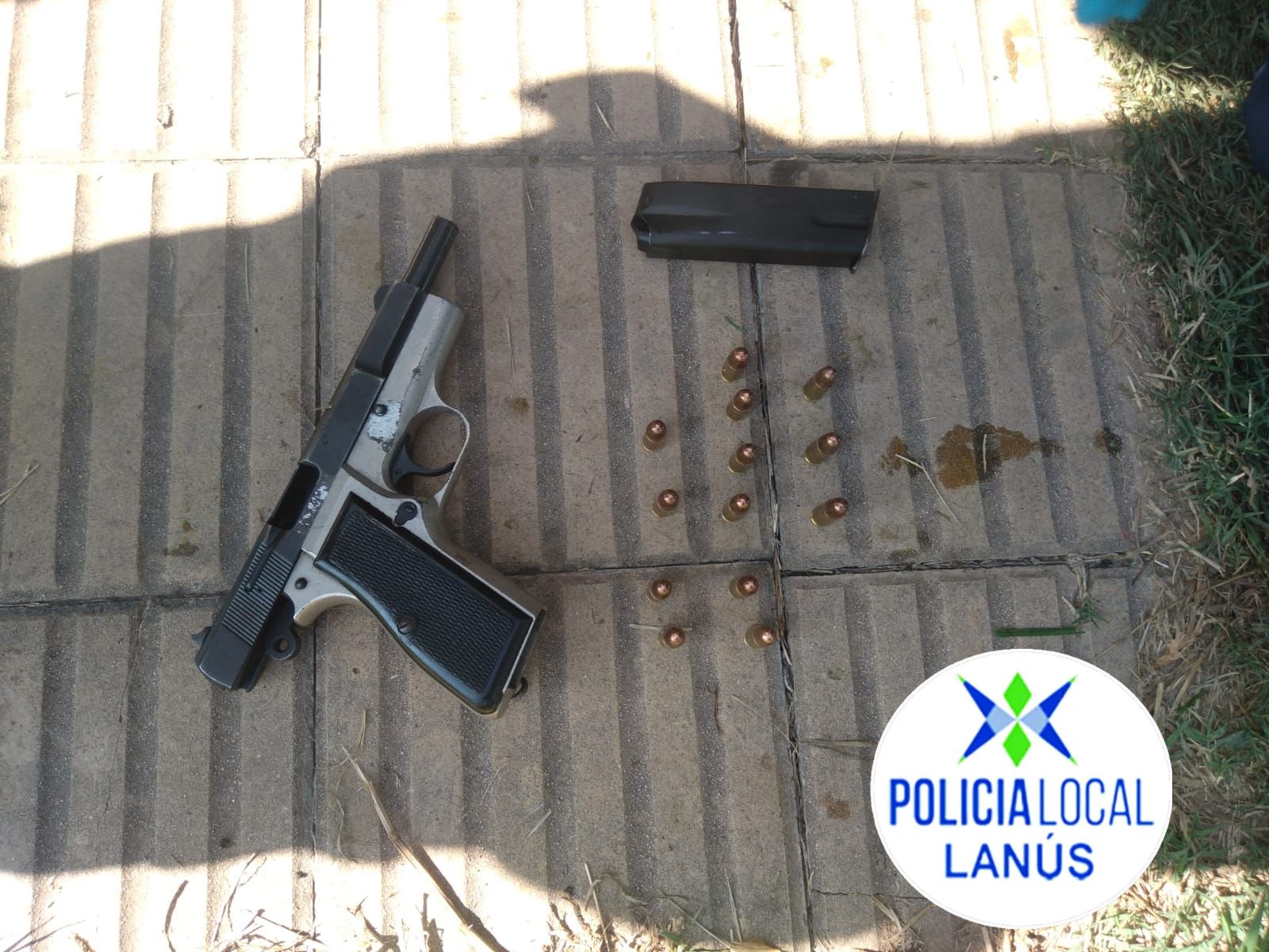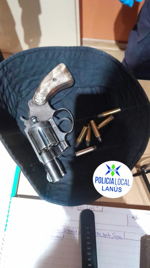 Cca. Personal de esta, cte. 20, y CTE 17 de Cdo en arterias Arias 3189, proceden a la aprehensión de ROJAS MATÍAS RUBÉN y ROSALES DANIEL ALBERTO quienes minutos antes ingresaron a la inmobiliaria de la víctima M. G., a quien a maniatan de pies y manos con fines de ilícito. Mismos fueron aprehendidos en el lugar y se logra la incautación de 1 Pistola 9mm Browning numeración suprimida, 12 municiones y 1 revólver Cal. 38 serie 61-0543 marca Colt con 6 municiones intactas. Víctima ilesa. Instruye Lanús 8va.