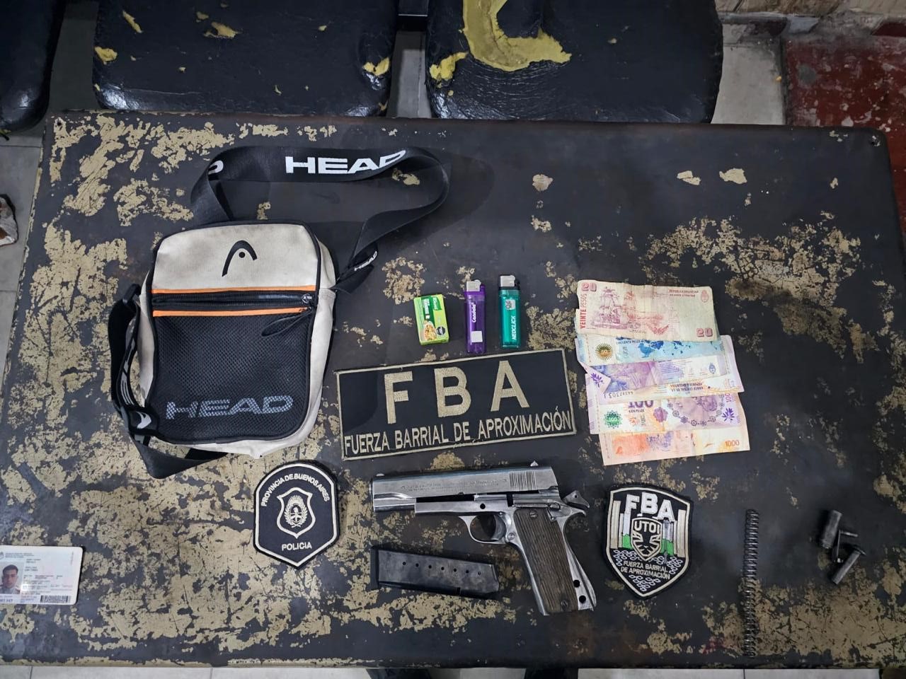 Personal de UTOI, en el marco de Mega Operativo, realizando tareas de recorridas preventivas, en arterias antes mencionadas, se intercepta ciudadano. Se procede a la identificación del mismo, Ilan Tomás Arévalo, de 20 años, soltero, realizando un cacheo extracorpóreo, hallando entre sus prendas Pistola Calibre 45 mm marca 11.25 automática sin numeración. Seguidamente se cursa masculino por sistema informático 911- COM, quien nos informa que no recae impedimento legal alguno. Trasladamos al masculino a comisaria jurisdiccional a labrar actuaciones de rigor.