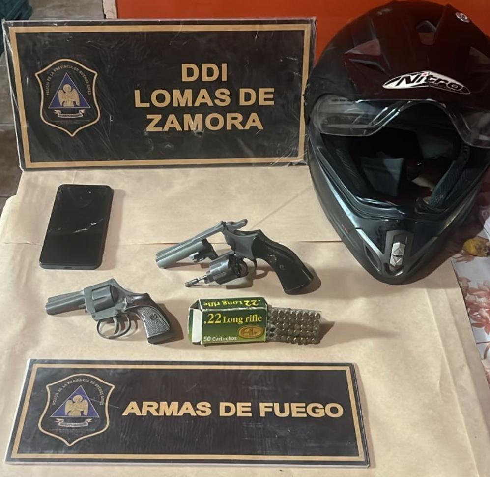 SECUESTROS: revólver Cal. 22 MC Serie 106107 – revólver Cal 22 Bagual serie 30250 – (37) municiones cal. 22 – llave de moto – casco de motocicleta – buzo con capucha – ganzúa – tel. celular