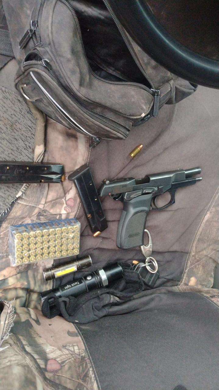 Fecha, diligenciadas las mandas, se logró la detención de Barrios Maximiliano de 28 años, Alles Javier de 40 años, Grenillon Juan José de 46años y Daniel Arias, la aprehensión de Eduardo Arias de 57 años y sec. de U$S1500, $15.500, revólver Daluman .22L, revólver Rubí cal. 22L, escopeta Centauro cal. 16 s/num., pistola BERSA Thunder cal. 9, *elementos rec. Por vmas (2 cabezales de caballo, 5 celulares, Casco, 2 taladros c/cargador), 72 municiones .22 y una vaina servida, 24 cartuchos de escopeta .16, y 84 cartuchos .9mm.