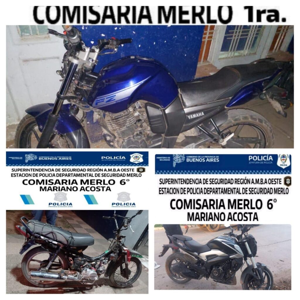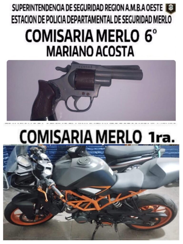Personal policial. en recorrida calle García Belloso y Ángel Quesada, esta, proceden a la aprehensión de García Juan Pablo de 27 años y secuestro de su moto Corven Mirage 110 sin ptte. cuadro nº 8CVXCH8A5EA047689, motor nº JL1P52FMH1407200083, el cual registra P.S. Activo, del 24/06/23, a solicitud UFI 4 Monte Grande, Cría. Esteban Echeverria 1ra, por Hurto Motovehiculo, bajo ISN 2994181; En Av. Hipólito Irigoyen y San Juan, aprehenden a Gauna Ignacio Oscar Alberto de 21 años y secuestro de su moto YAMAHA FZ16 c/ azul, sin ptte., cuadro 8C6KG0518F0059407; c/ P.S.A. por delito encubrimiento infr. Ley 23.737, de 23/02/24, solicitud cria merlo 1ra vtma MATÍAS G., interv. UFI 03, Morón, NSI 3063884. En requisa se le incauta 0,6 grs. de marihuana; En Av. Hipólito Irigoyen y San Juan, aprehenden a CORREA Alexander de 25 años y secuestro de su moto KTM RS200, c/ naranja y negra, sin ptte., cuya numeración de motor y cuadro, se encuentra adulterada, por stiker original 690639671, posee P.S.A. de fecha 11-04-23, por delito ROBO CALIFICADO POR U.A.F, a solicitud Dto. Mercedes Benz, vtma DANIEL A., interv. UFI 09 La Matanza, ISN 2973679. En requisa se le incauta 5,7 grs. de marihuana; En calle 24 Noviembre y Heredia aprehende a ARAUJO LEONEL de 23 años y CRISTIAN C. de 16 años y secuestro de Moto Rouser negra, sin Ptte Motor JFXCNM12191, c/ PSA, NSI 3.060.120, por Cria. Morón 2°, del 12/02/2024, caratula Hurto, secuestrando también REVÓLVER cal .22, Serie 149983, ( no arroja impedimento) c/ una munición intacta y dos casquillos percutados. Cómo así 12.3 grs de marihuana .