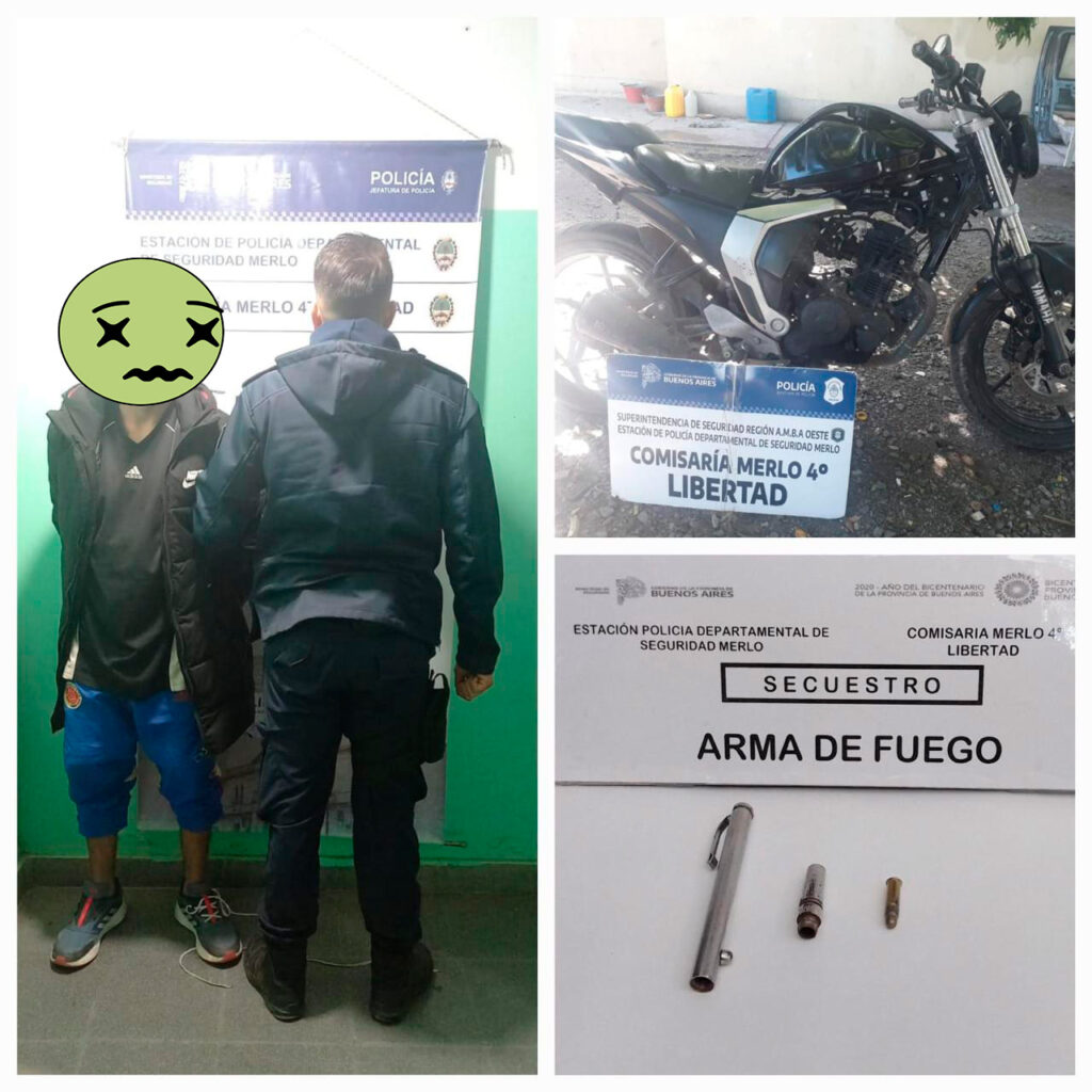 Personal Policía abocados al operativo dispuesto bajo la prevención de la modalidad “Moto Chorro” procede a la id. 18 moto vehículos y 20 pnas, no obstante ello en calle Malvinas y Moreti, aprehenden a Ramirez y Sec_ moto Honda CG S/D, (Numeración suprimida), y 23.45 gr de marihuana; en calle Arrecifes y Balvian aprehenden a Rojas Rivas y sec_Honda Wave 110 blanca, sin ptte., Motor JA37E3578842 con PSA, por Hurto NSI 3042683, solicitad Cria Ituzaingo 1ra, 18/12/2023*; en Quito y Vieytes aprehenden a Brizuela y Sec_Motov. Yamaha FZ 150 cc, S/D, c/ motor y cuadro suprimidos, P.CAPTURA ACTIVA delito epígrafe, 01/03/2024, stud Jdo. Correccional 1 Morón, causa 4059, ISN 345957 y a sec_ Lapicera Pistola Cal. 22, sin numeración ni marca, con una munición mismo calibre; de igual forma Tras persecución Pnal CPM en calle Av. Pte Perón y R. Peña aprehenden a RAMOS NICOLÁS GABRIEL y a GORBALAN LEANDRO NICOLÁS,y sec_ de moto Corven Triax 150 numeración cuadro suprimida, (1) revólver Dóberman cal. 32 serie 02701U (sin impedimento) c/ 03 cartuchos mismo cal. Intactos en tambor, (02) Tel. Celulares, $6.330, (1) manopla de acero, (03) envoltorios nylon c/ cocaina total 2,2 grs.