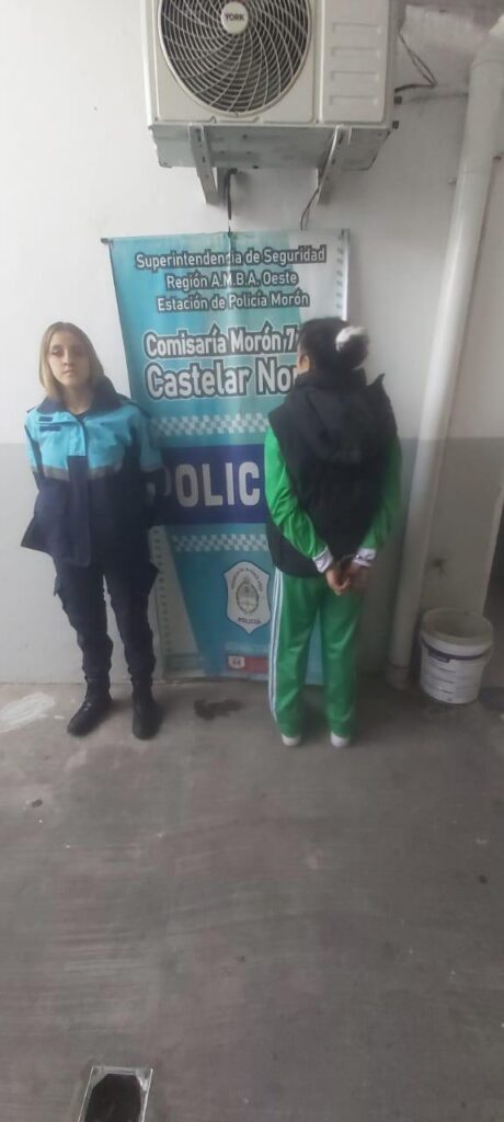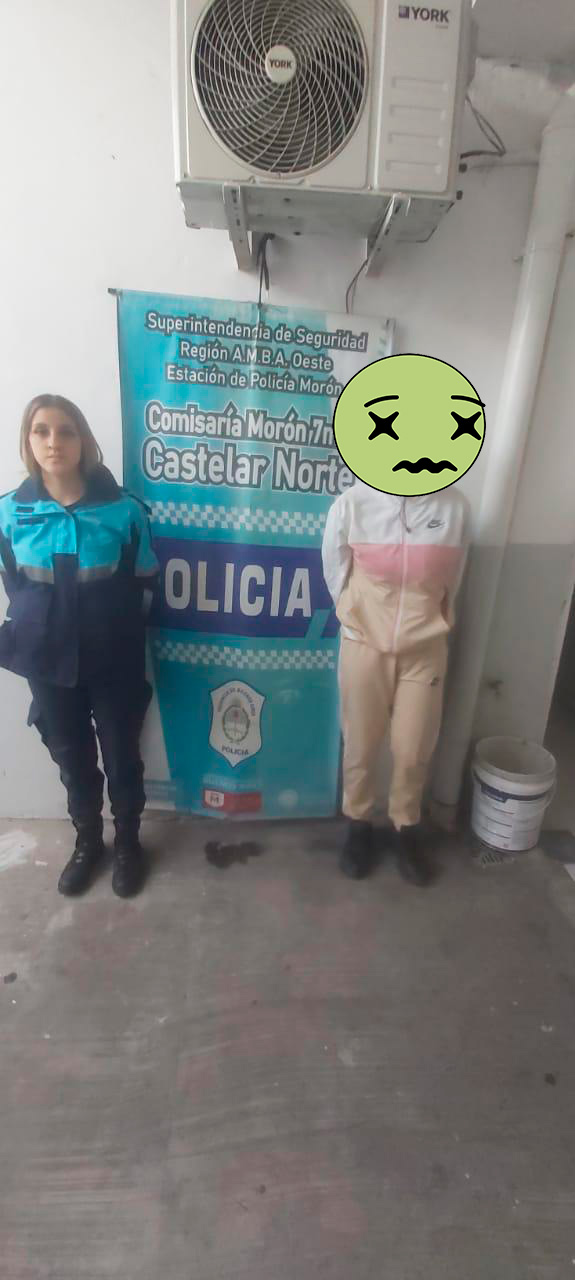 Personal UPPL Morón posta Vergara desplazado al Shopping Plaza Oeste, donde 03 femeninas cometen ilícito y confrontan con Personal de seguridad. Al arribo de los efectivos y tras reducir y las aprehendidas siendo tres femeninas las cuales se identifican como: Jazmín P. de 17 años, Lara G. de 14 años y Malena B. de 15 años, siendo esta última quien lesiona a la Sgto. Bordón Fernanda provocándole una mordedura en la oreja derecha arrancándole una porción. Ctes. resultan ser de los Monoblock Ciudad Evita Matanza a quienes se les secuestra los elementos sustraídos 02 perfumes, 02 paletas de maquillajes, 02 carteras y 01 pistola Prieto Beretta serie 038085N un cargador y tres cartuchos intactos s/impedimento. Personal Policial herido es traslado al Hospital de Morón dándole intervención a la ART.