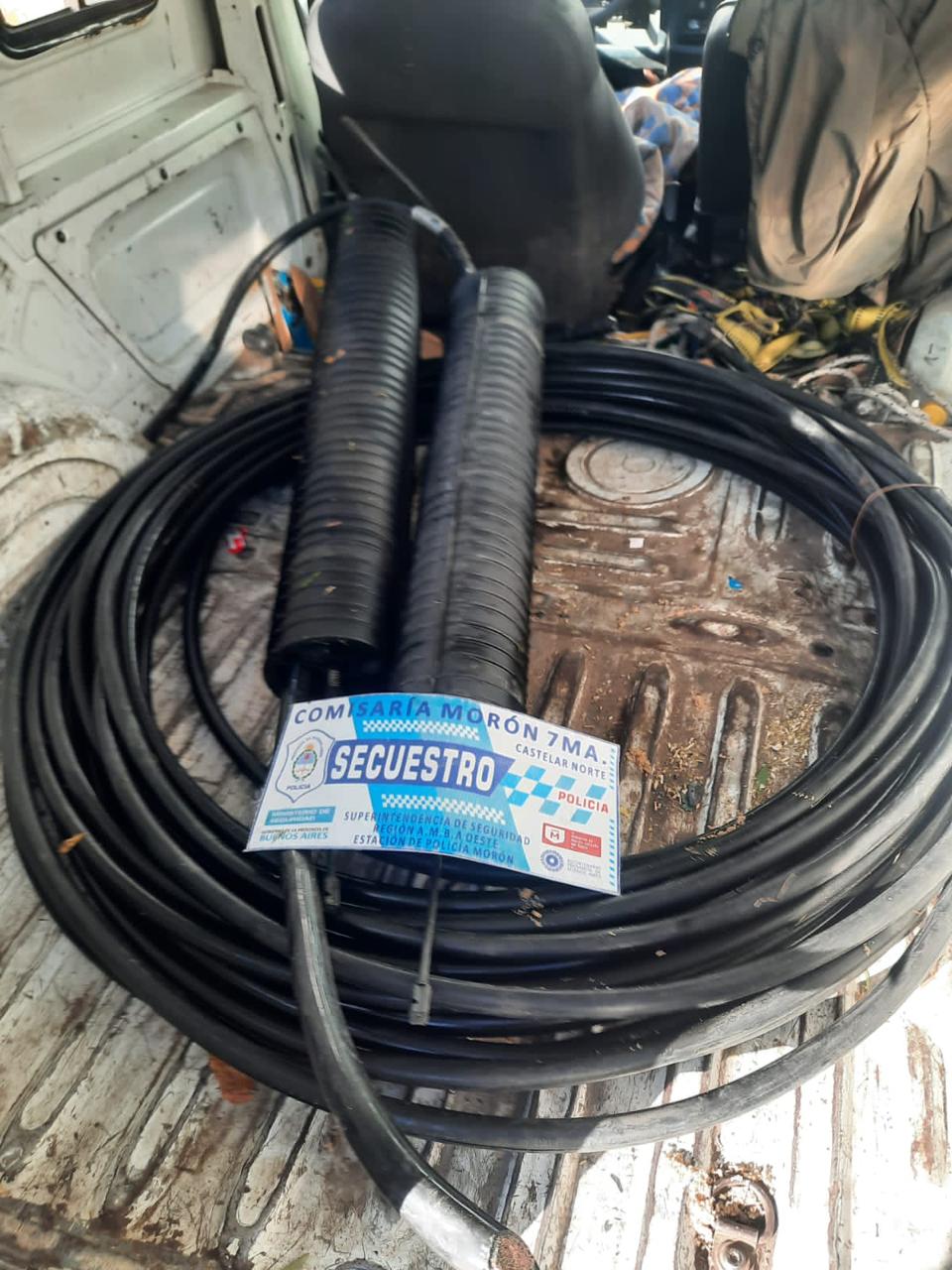 Raíz 911, personal policial del Comando de Patrullas, es requerido en San Nicolás y Montes de Oca, donde aprehenden a PIRIS, MONTALVAN, AGUILAR, LEDESMA y QUINTEROS, a bordo de vehículo Renault Express ptte. BAG-939, quienes se hallaban sustrayendo cables del lugar. Se les sec.: 40 mts., de cables, 05 cascos, 02 escaleras, 02 sierras de mano y 02 arnés. MPF dispuso secuestro de elementos, aprehensión y comparendo a sede Fiscal.