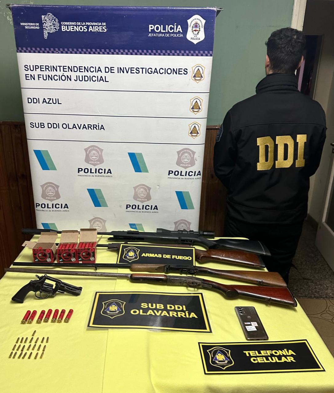 SECUESTROS: 1 tel. cel., 1 revolver calibre .22 largo, 2 escopetas marca CENTAURO Cal. 28, 2 aires comprimidos sin marcas visible, 22 municiones cal. 22 y 70 cartuchos cal. 28.