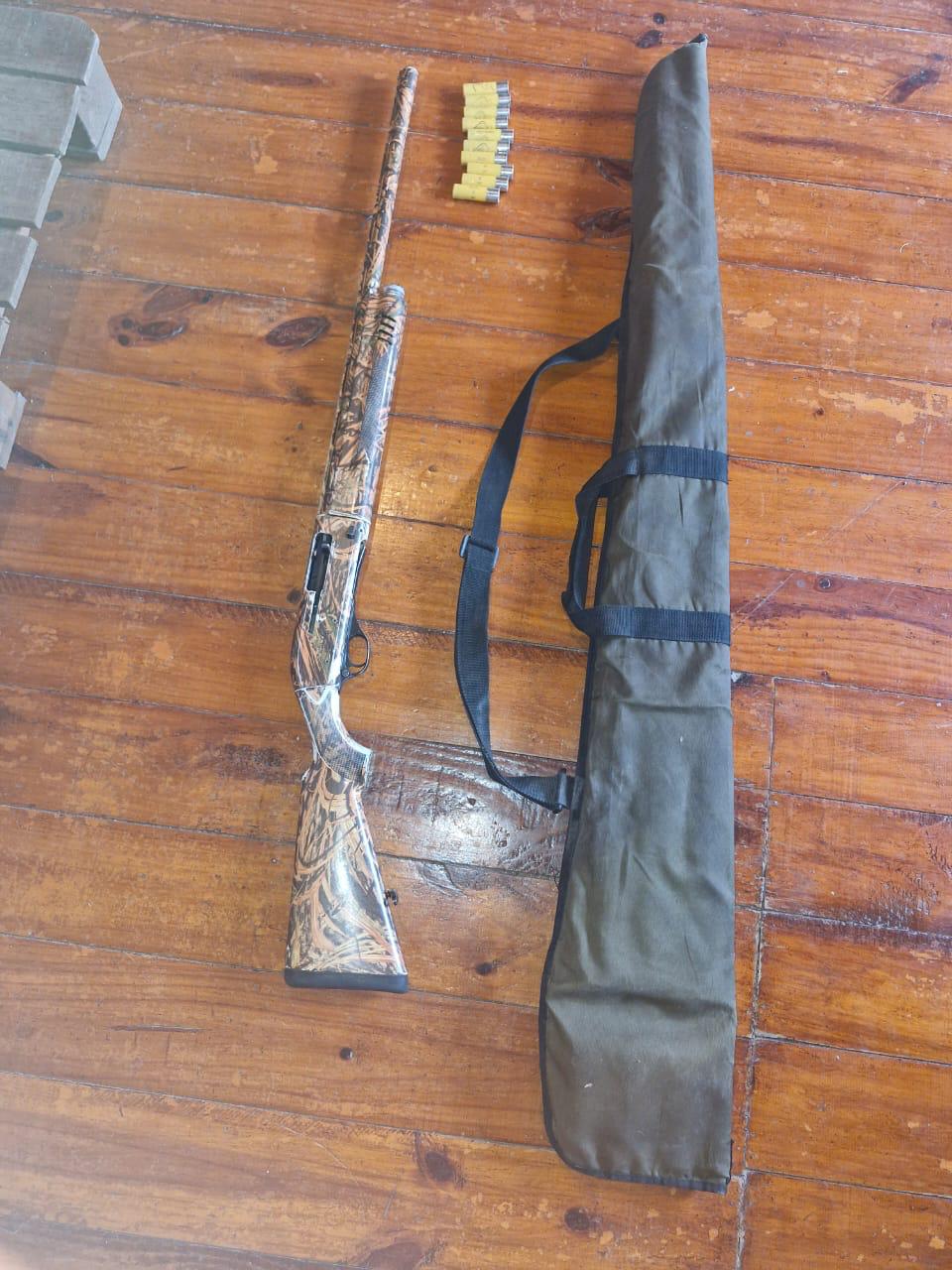 Fecha, personal esta, prosiguiendo tareas investigadoras, procedió incautación arma de fuego escopeta marca Mágnum serie 080923 con 11 cartuchos calibre 20 mm marca Río, utilizada en autos por autor aprehendido ALANIZ SERGIO ROMÁN de18 años.