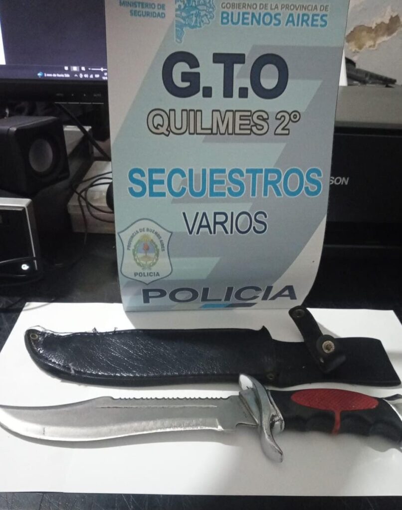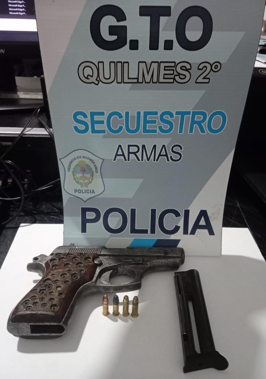 Fecha, personal del G.T.O. de Cria. Quilmes 2da. proceden a cumplimentar diligencia de allanamiento dispuesta en el marco de la I.P.P. 13-00-028519-25, la cual fuera otorgada por el Juzgado de Garantías 03 del D.J.Q. procediendo en el día de la fecha, juntamente con personal del G.T.O. de las Seccionales 3ra. y 8va. de Quilmes como así también con apoyo del G.A.D. Quilmes, procediendo a realizar la irrupción en el domicilio ubicado en Chaco e/Ituzaingó Bis y Cabral de Bernal, lugar donde al ingresar a la vivienda efectivizaron la detención de la imputada de autos, la ciudadana YOLANDA BAEZ (53), requisando la vivienda logrando secuestrar un arma de fuego del tipo pistola Cal. .22 mm. sin marca ni numeración visible, con un cargador y cuatro proyectiles intactos, incautando también una cuchilla con funda de cuero negra, procediendo a trasladar a esta femenina a Cria. Quilmes 2da. donde se comunica lo actuado a U.F.I. 03 del D.J.Q. quien toma conocimiento de lo actuado, impartiendo directivas a cumplimentar, solicitando actuaciones y detenida a sede judicial el día Lunes 22/09 a primera audiencia.
