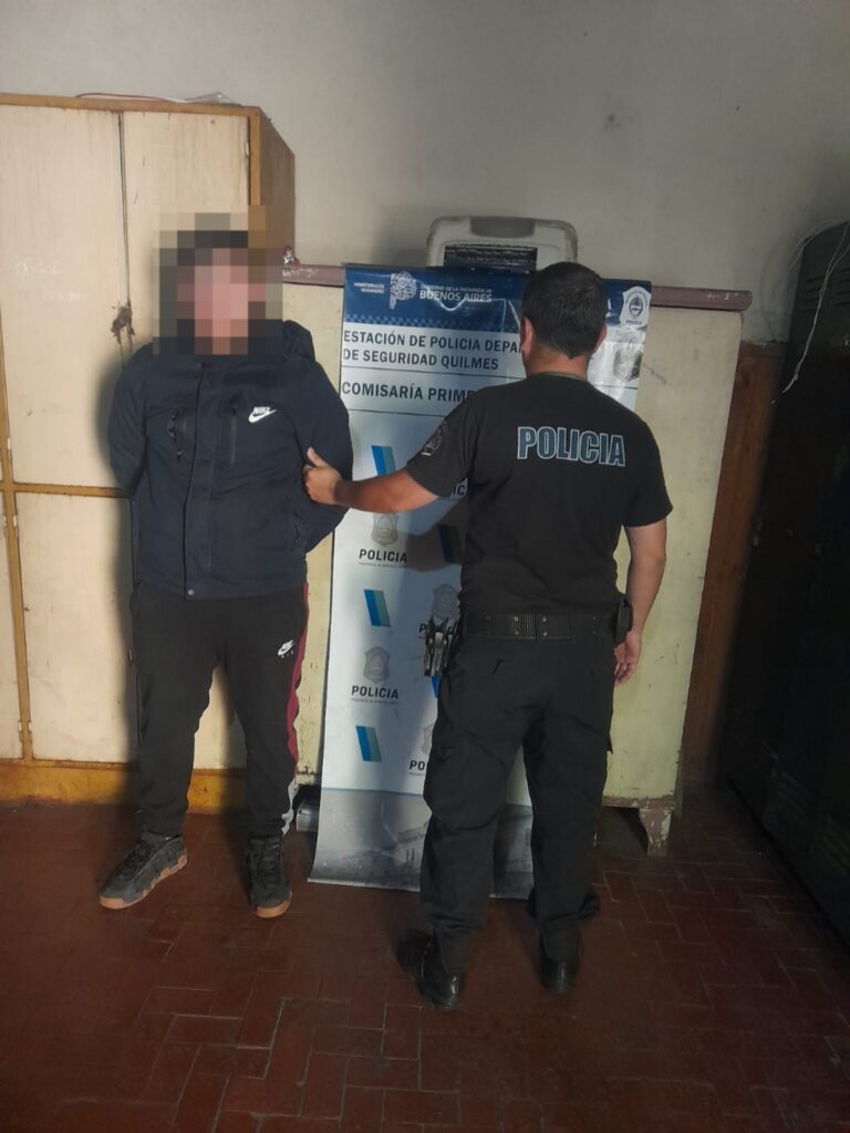 Fecha, personal de U.P.P.L. Quilmes realizando recorridas en zona céntrica y comercial de Quilmes observan el desplazamiento de un masculino a bordo de una motocicleta tipo enduro color roja y blanca, quien se desplazaba velozmente en contramando por la arteria San Martín saliendo tras el mismo, dando alcance en la intersección con la arteria 25 de Mayo donde al colocarse a la par con la finalidad de que el mismo detenga la marcha, este quiere realizar una maniobra evasiva provocando que colisione al móvil policial cayendo al piso, logrando así los efectivos con ayuda de los transeúntes reducirlo e identificarlo como LUIS IVÁN MONZÓN (18), apersonándose en ese momento una femenina corriendo quien les refiere que momentos antes en circunstancias en que ésta se encontraba caminando en la intersección de las arteras 25 de Mayo y Moreno este sujeto cruza velozmente a la par de la misma intentando arrebatarle su celular, lo logrando su cometido para así continuar fugando, saliendo ésta tras el mismo y observando a los uniformados cuando logran reducirlo, trasladando las partes a Cria. Quilmes 1ra. donde se establece por parte de base C.E.Q. que el mismo se encuentra involucrado en varios hechos de esta este tipo, comunicando lo actuado a U.F.I. 04 del D.J.Q. quien dispuso aprehensión del mismo en orden al delito de epígrafe, impartiendo directivas a cumplimentar, solicitando actuaciones y aprehendido a sede judicial. Ampliaré.