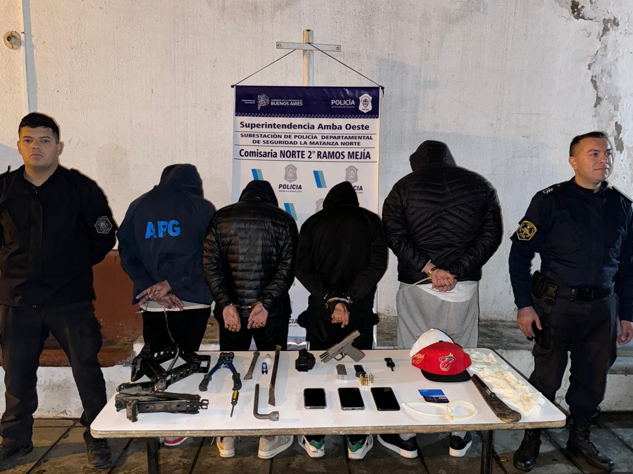 Fecha, Personal policial en cumplimiento de OSE 1043/24 sobre «Prevención de Delitos modalidad Entradera» en calle Guido Spano y Argentina proceden a la aprehensión de: Thiago Emiliano A. de 17 años, Tomás Gastón Coppola, de 20 años, Franco David Sobresaca, de 21 años y Franco Emanuel Yelma, de 22 años, los cuales circulaban en vehículo VW Gol Ptte JYM-660, quienes merodeaban de forma sospechosa hacia las vivienda como quien marca los domicilio. Logrando la aprehensión tras un operativo cerrojo, incautándose en su poder: Arma de Fuego del Tipo Pistola Bersa cal 9mm serie K85711 con 6 municiones, dos barretas de acero de unos 40 cm, un destornillador de gran porte, tres teléfonos celulares, guantes de látex, precintos, y herramientas utilizadas para la apertura de puertas.- Asimismo se logro establecer de las tareas llevadas a cabo que estos sujetos serian autores de los hechos modalidad entraderas sufrido en la zona de Ramos Mejía (se amplia memorandum), quienes cambian de vehículo tras los atracos, Consultado con la UFI 1 de La Matanza dispuso aprehensión de los mayores. Dr. Volpicina misma medida para con el menor.