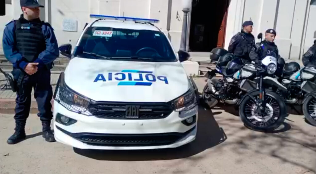 En Ranchos, General Paz, junto al intendente Juan Manuel Álvarez para entregar nuevos móviles y motos policiales que se incorporan al patrullaje del distrito.