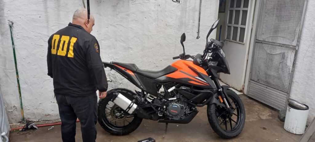 Detectives de DDI San Isidro y SDDI San Fernando, tras tomar intervención en hecho acaecido en la víspera, donde delincuentes le sustraen motovehiculo kTM- 390, a la víctima Alejandro G., efectuándole un disparo en la pierna derecha arriba de la rodilla con entrada y salida, es que efectuadas múltiples tareas investigativas, personal de esta junto a EPDS San Fernando, logra establecer domicilio donde ingresaran los motovehiculos involucrados con posterioridad al hecho, por que se efectuó allanamiento de urgencia en calle Patricias Argentinas 3163 de San Fernando., lugar donde es habido el motovehiculo sustraído (KTM), como así también autopartes de distintos rodados. Se identifica al propietario del lugar como GIMÉNEZ ROBERTO ALEJANDRO (50). UFI interviniente, dispuso medidas de rigor, secuestro de motovehículo, autopartes y aprehensión de urgencia del nombrado. Se continua con las tareas tendientes a la individualización y aprehensión de los autores prófugos.