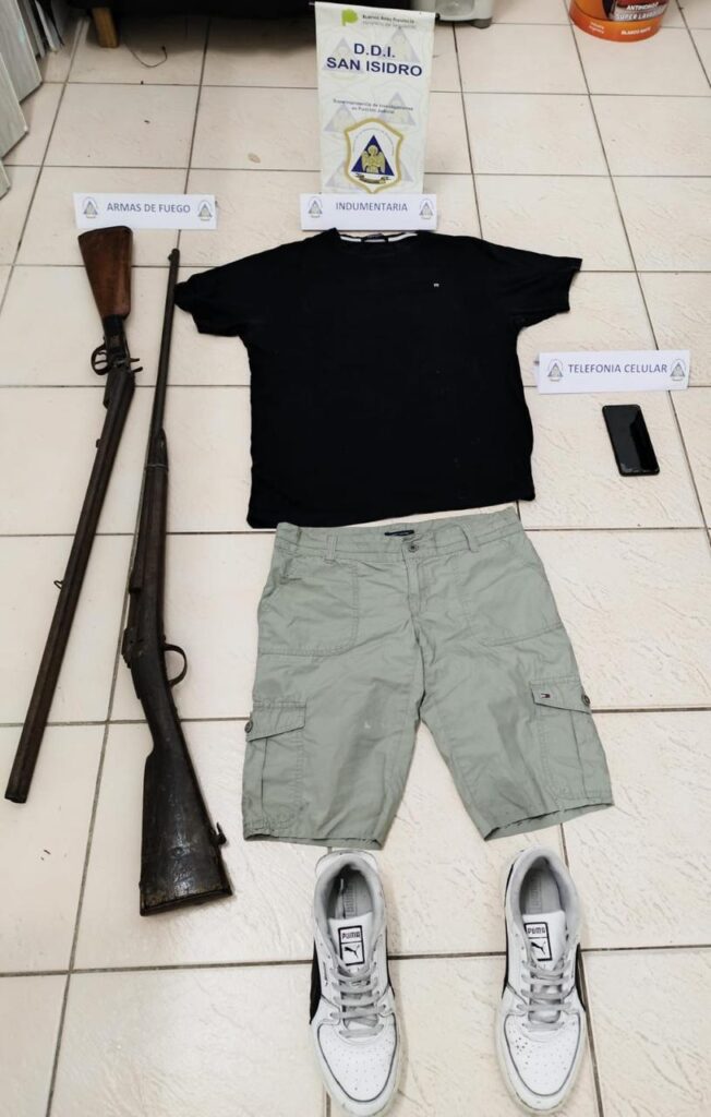 Que con fecha 07FEB24, mientras la víctima Ariel B. circulaba en su moto Yamaha Tenere ptte. A092KNV por Caracas e/ Pueyrredón y Yapeyú, le fue sustraída, junto a pertenencias por 2 masculinos armados que lo interceptaron a bordo de motocicleta de color oscuro. Tras la aprehensión de uno de los autores el 08FEB24 y recuperada la moto sustraída, se ampliaron las tareas investigativas logrando identificar un posible domicilio del segundo delincuente. Fecha, allanada finca de calle Pérez Galdós 2495- San Fernando, se logró el secuestro de teléfono celular – zapatillas – prendas de vestir – escopeta doble caño sin marca visible Cal.16 S/1033 – Escopeta sin marca c/ inscripción ML1874 y la aprehensión de los nombrados Rolón Celso Leonardo de 54 años y Ulises Román (padre e hijo). Quedando imputado el mayor por Tcia. Ilegal de Arma de fuego, mientras el menor, acusado por Robo Calificado.