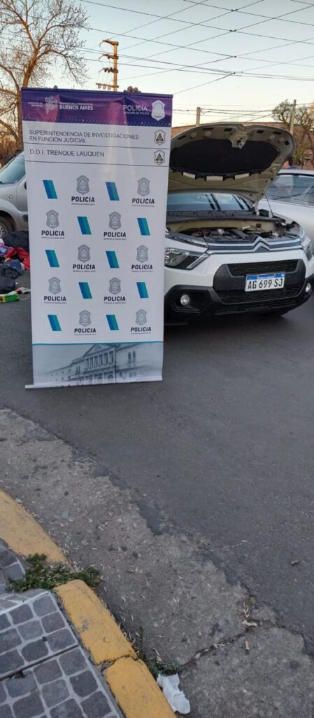 Por ello surgiendo de las escuchas en directo, de que TOSCANO y DRAGOZET habían rentado un auto de alquiler marca Citroen modelo C3 dom. AG699SJ, color blanco, fines realizar entrega de estupefacientes en la ciudad de Trenque Lauquén, se monta operativo de seguimiento con colaboración de Policía Federal, desde domicilio particular de los investigados (Conurbano bonaerense), hacia destino, utilizando para ellos distintos vehículos no identificados, interceptando a los sindicados en calles Castelli y Pte. Uriburu, Loc.Trenque Lauquén, quienes circulaban con 2 menores de edad a bordo.