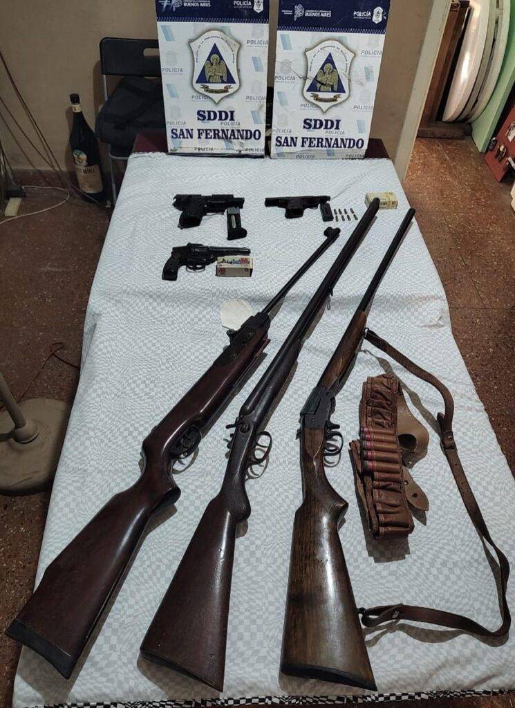 En cumplimentado allanamiento mediante EXHORTO, solicitado por el Jdo Penal Contravencional de Faltas N° 15- CABA, ante JG 4 Deptal., sobre dlio. en calle John F Kennedy 741- Victoria de San Fernando, se procedió al secuestro de armas de fuego y municiones siendo notificado imputado Juan Bautista Gregor de 27 años, de resolución (PERIMETRAL) dispuesta por JDO CIVIL 12– CABA Causa 102810/2023 No tomando MPF en turno temperamento alguno.